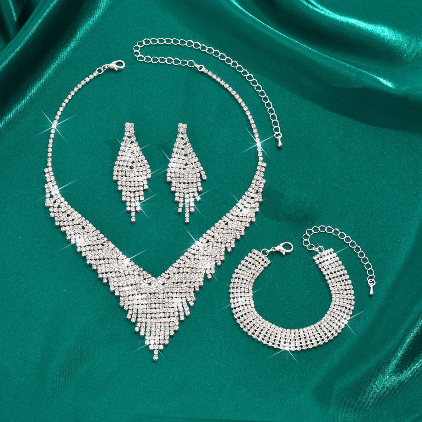 Color: 718b9005 silver necklace + earrings + bracelet