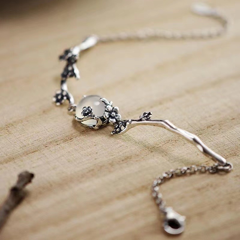 Plated 925 inlaid Moonlight imitation white chalcedony plum blossom women's bracelet to send friends personality simple Joker wholesale batch