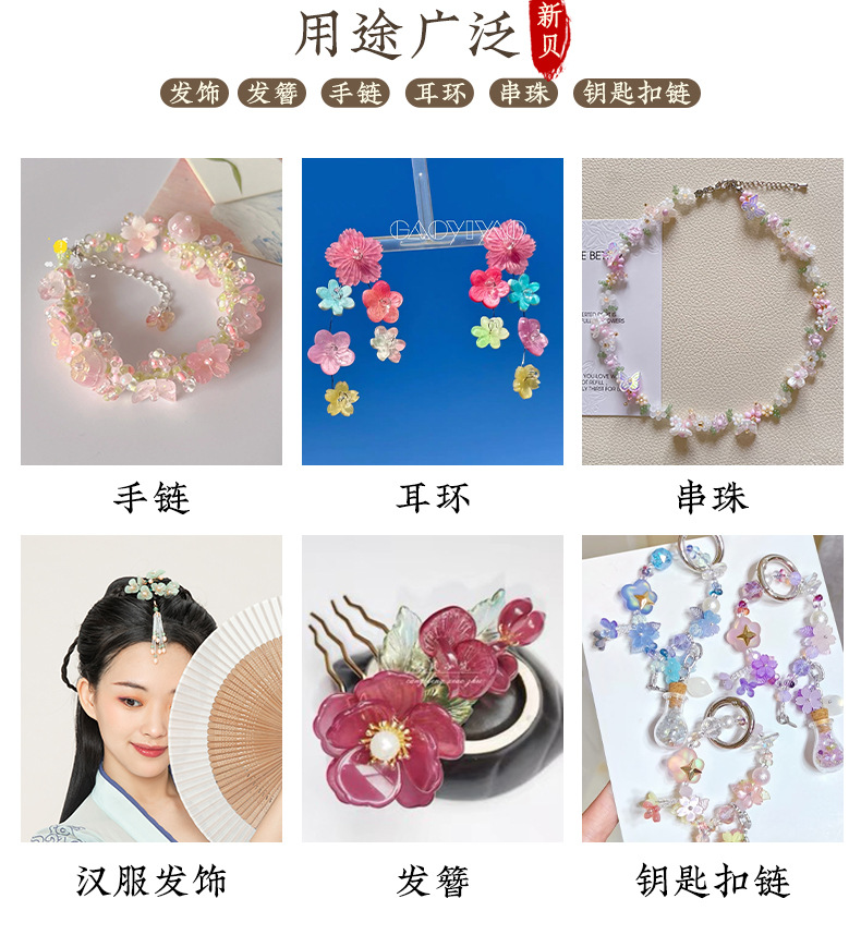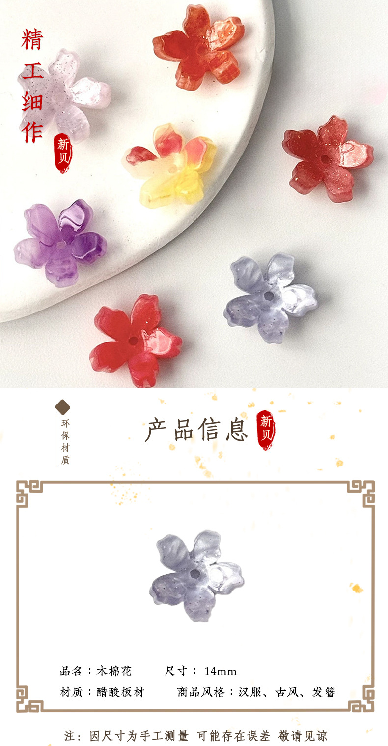 New Acetic Acid Accessories Bracelet Beaded Gradient Color 14mm Flower DIY Handmade Antique Hairpin Headwear Wholesale
