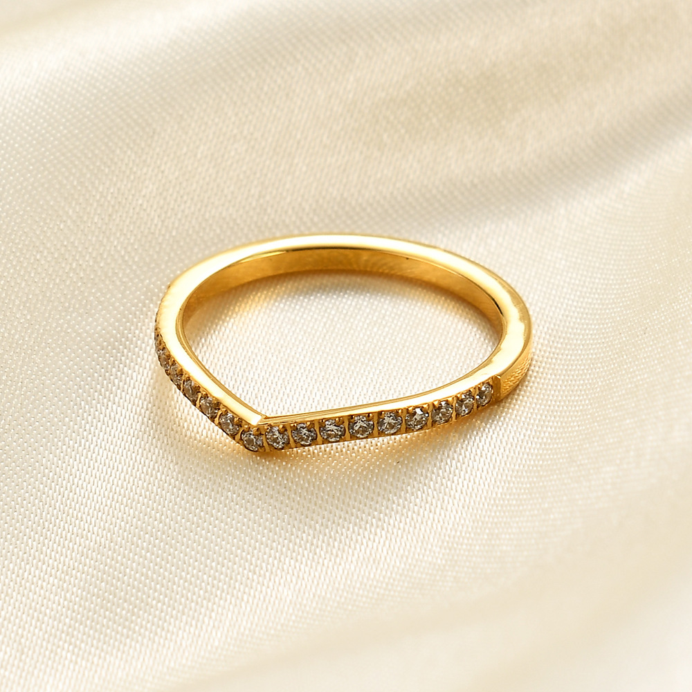 Manufacturer Wholesale 2mm Single Row Diamond Stainless Steel V-Shaped Ring Ring Fashion Student Versatile Personalized Jewelry for Women