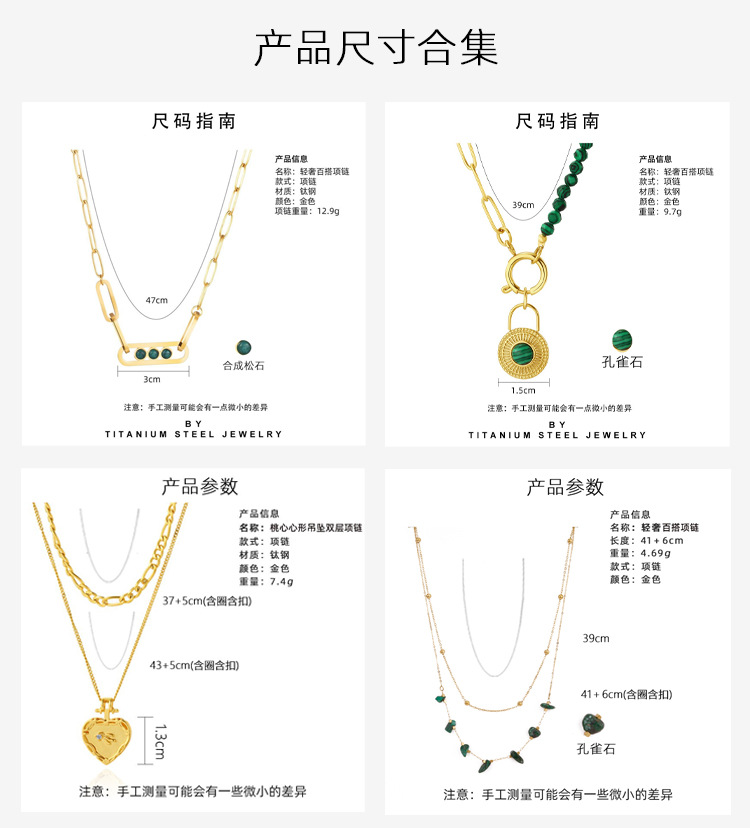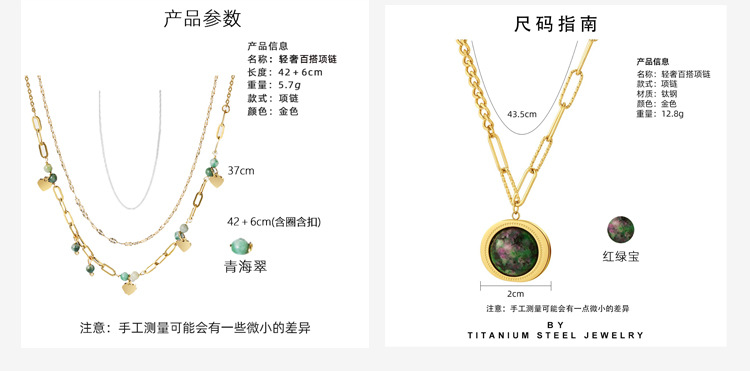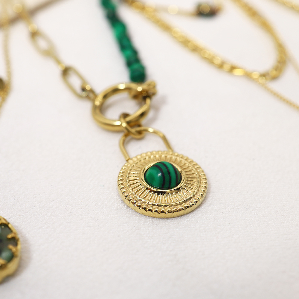 ins Style Green Combination Malachite Necklace Titanium Steel French Retro Double Layer Overlapping Versatile Natural Stone Clavicle Chain