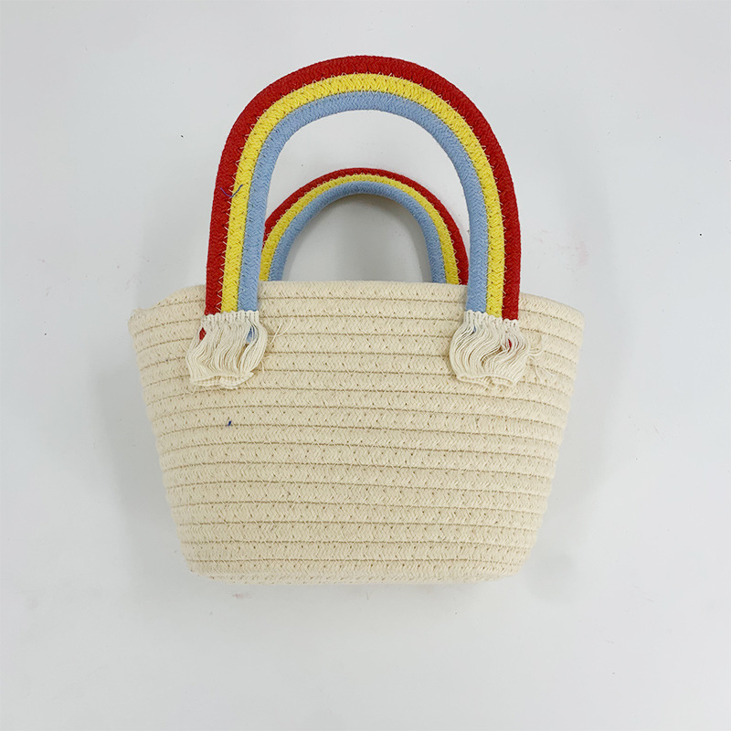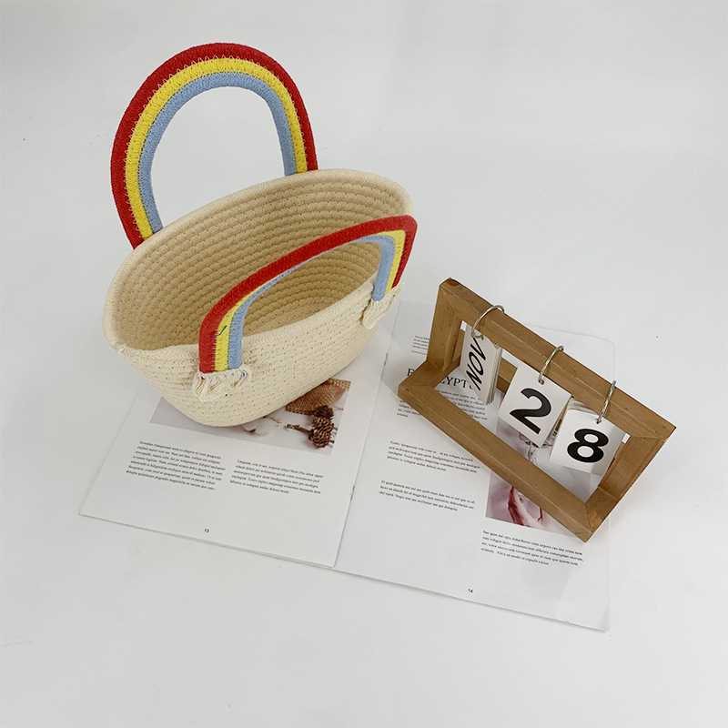 Rainbow Cloud Handbag Snack Storage Basket Cute Cotton Woven Bag Cotton Woven Rainbow Woven Bag Women's Fresh