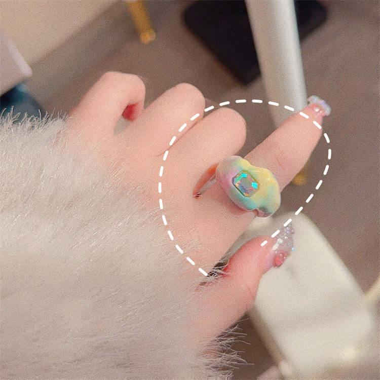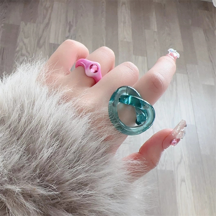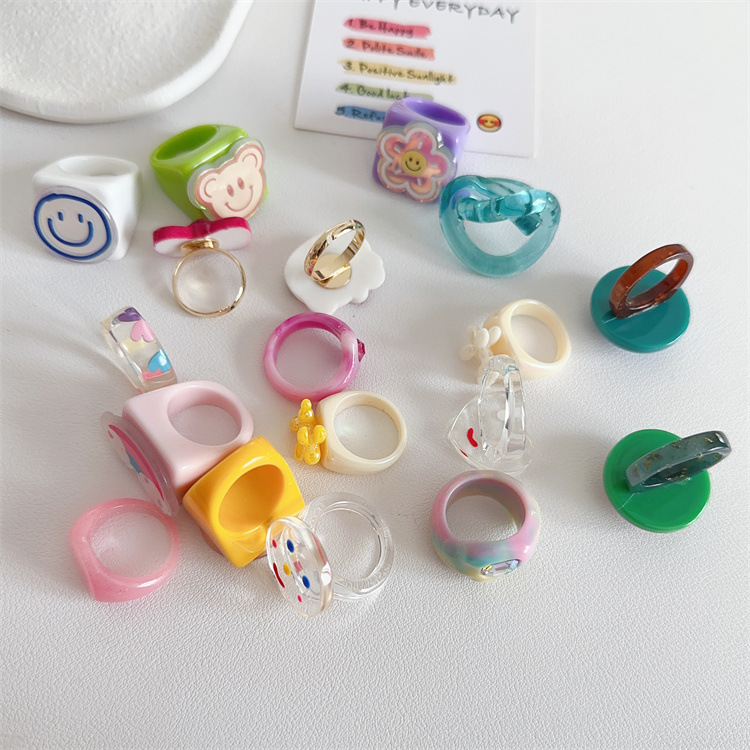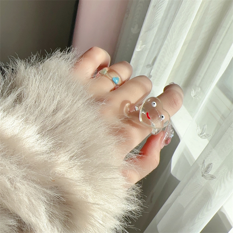 Korean Acrylic Niche Stylish Simple Cute Sweet Smiling Cat Puppy Ring Female Ns Non-Fading Index Finger