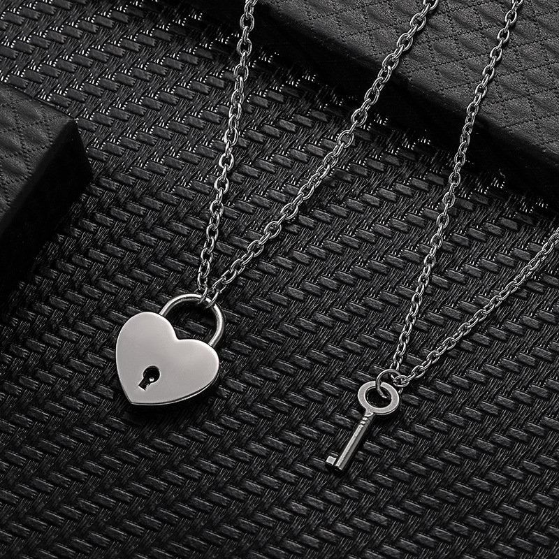 Fashion new couple necklace love lock key love token stainless steel pendant girlfriend key can be unlocked