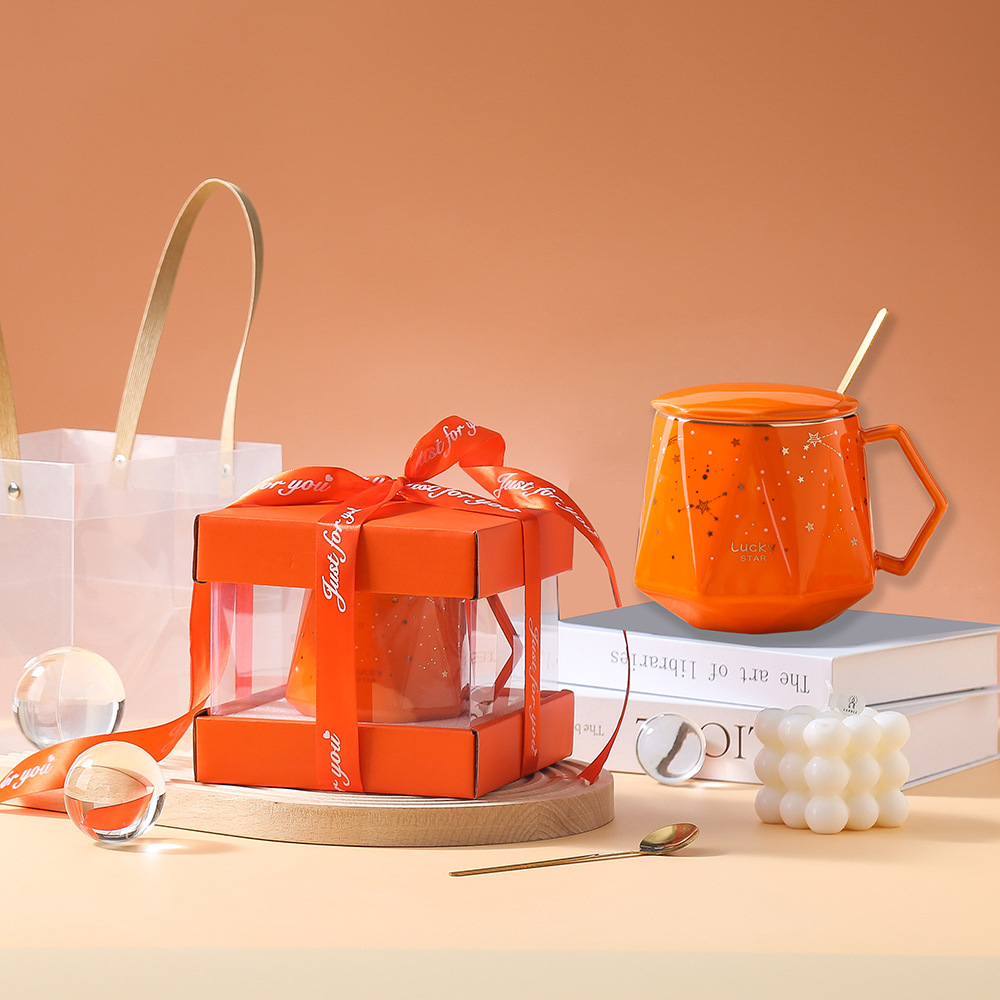 Color: Orange brick and stone Cup + lid + Spoon gift box (a box of 36)