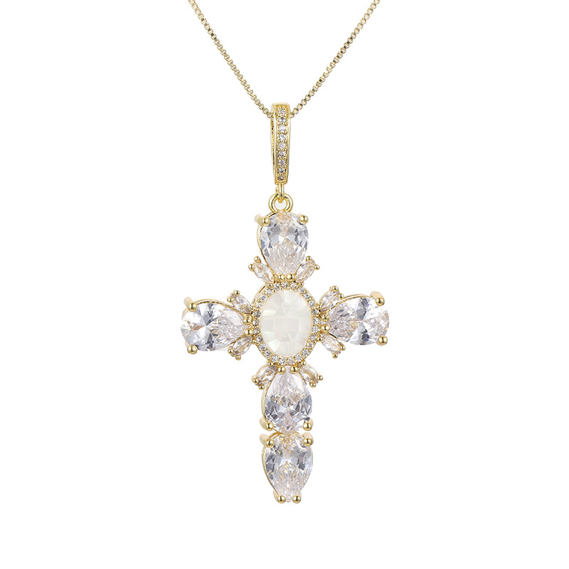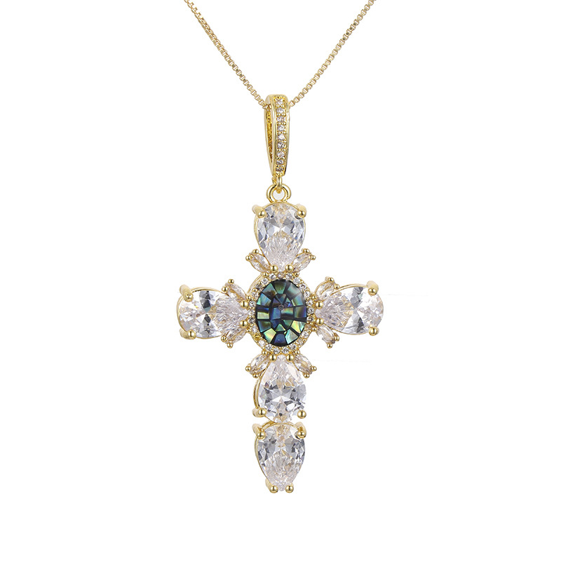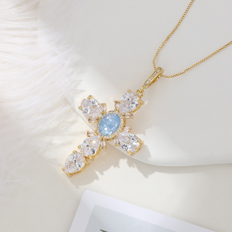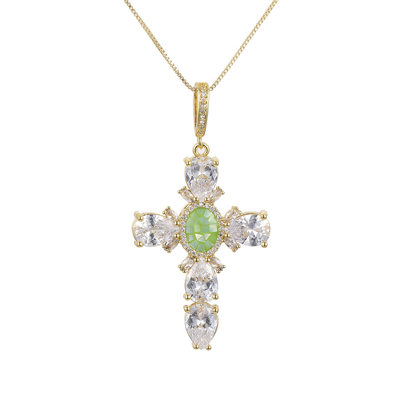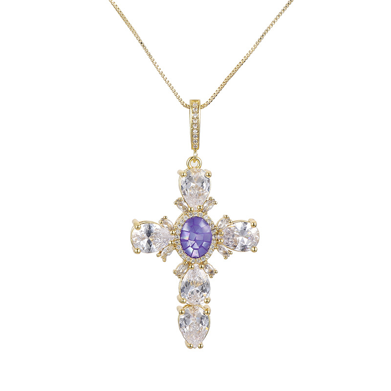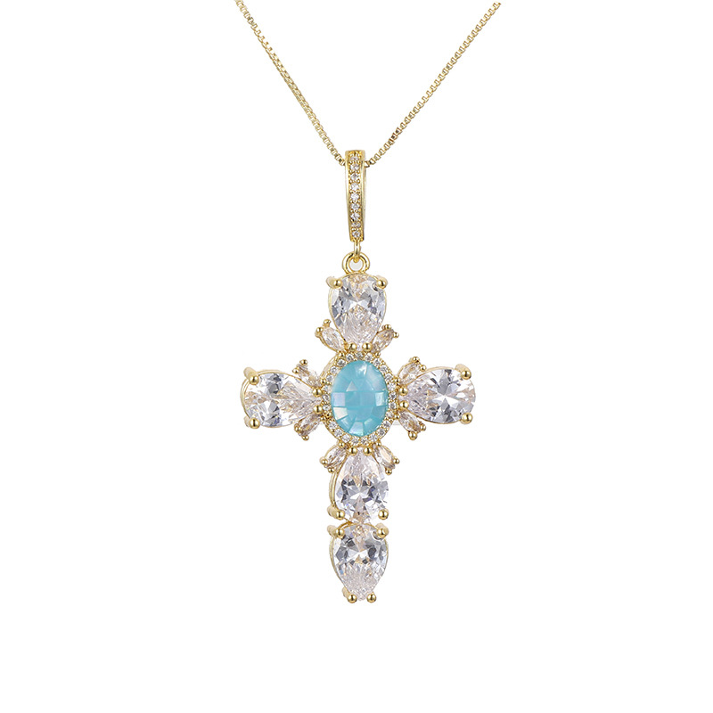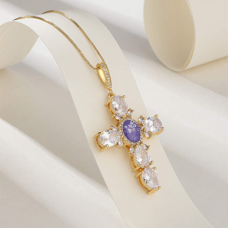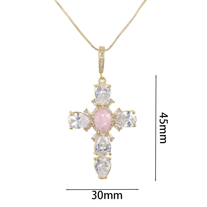 Sereni Europe and the United States cross-border fashion commuter copper gold-plated geometric color zircon cross religious necklace women