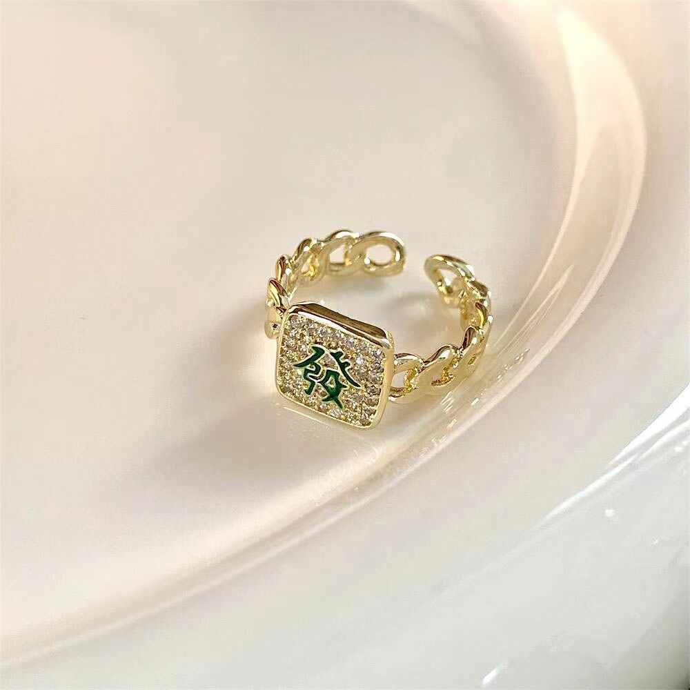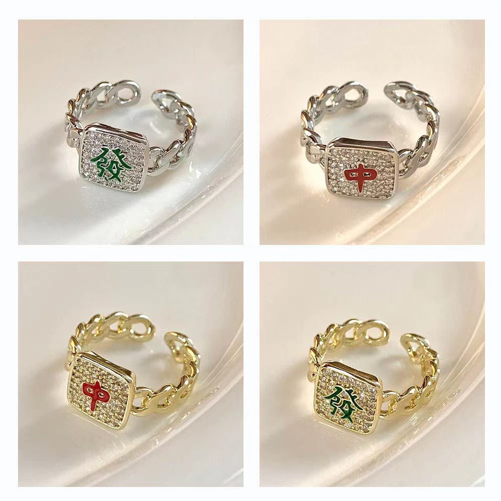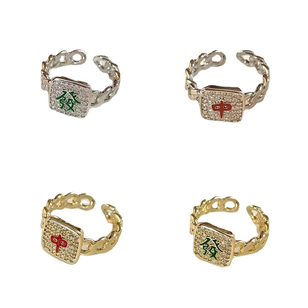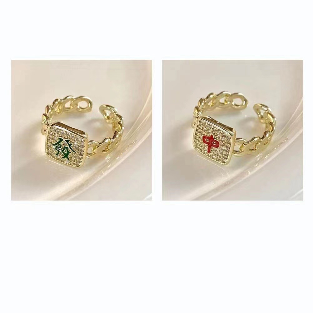 2022 New Tiktok Style Light Luxury Niche Design High-End Fashion Personality Mahjong Red Fortune Ring for Women