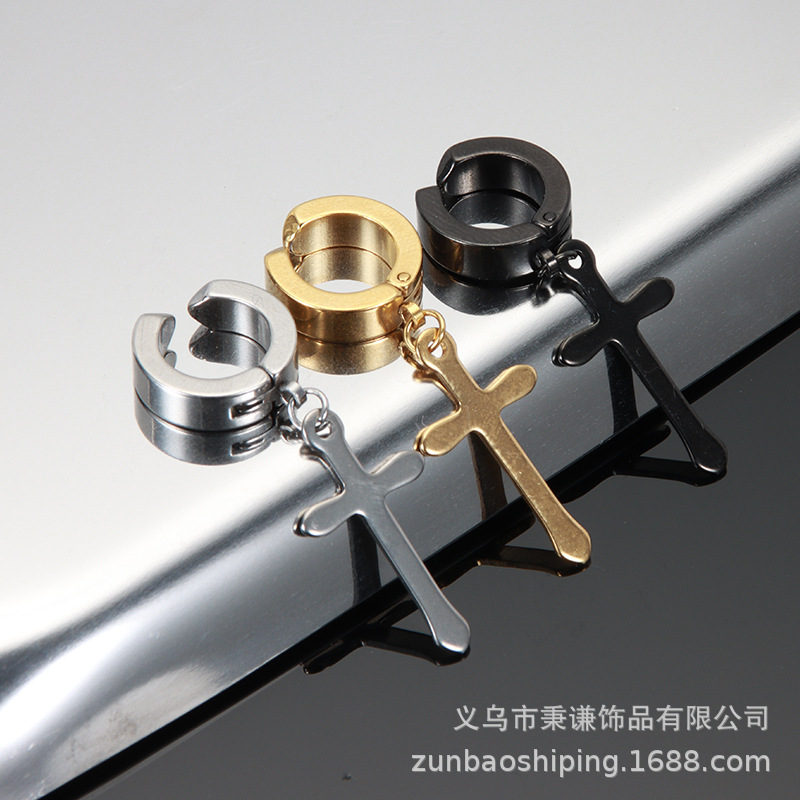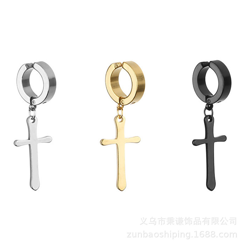 Color: B004 ear clip ear clip pointed cross black, 1 piece