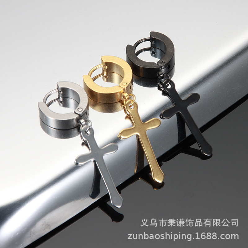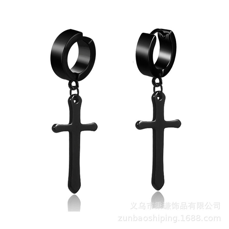 Color: B004 earrings with pierced tip cross black, 1 piece