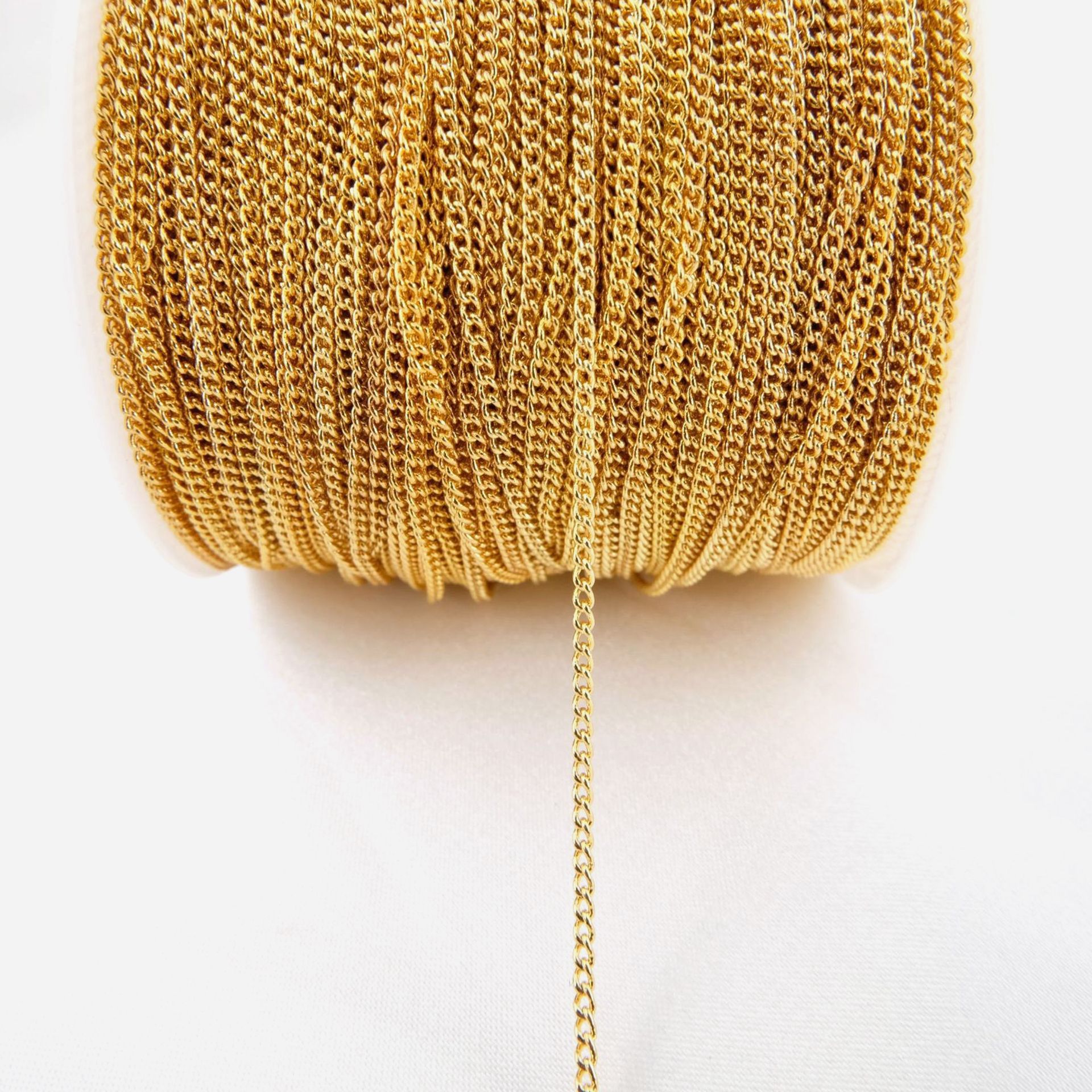 14K package gold color flat single buckle chain wholesale brass side chain universal loose chain diy jewelry bracelet material