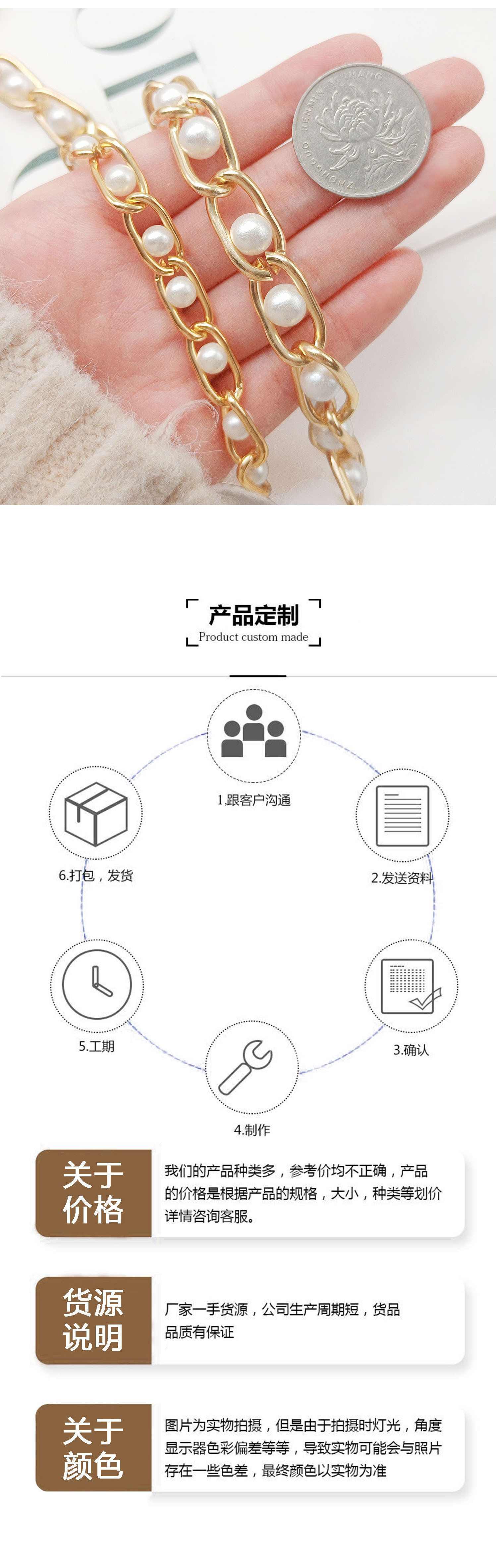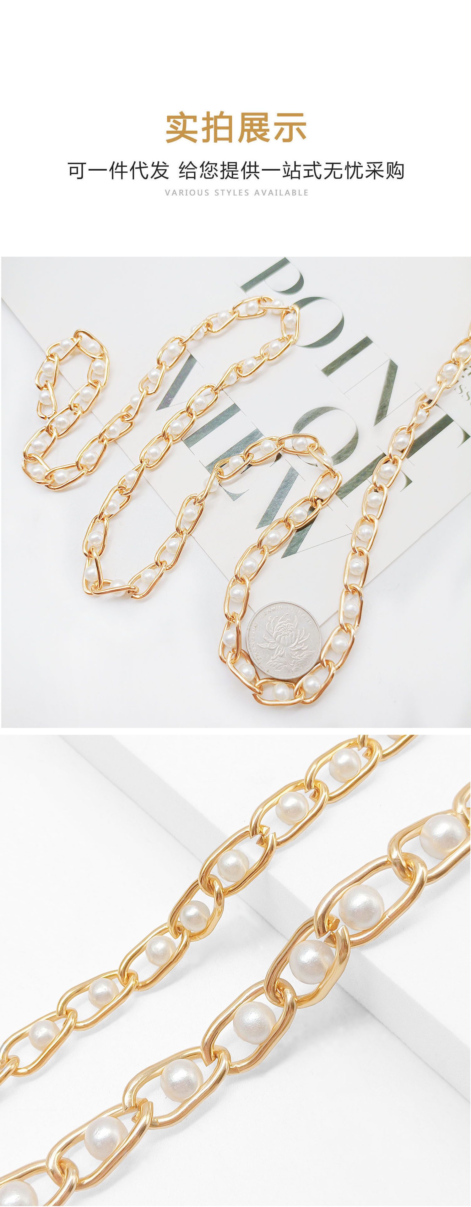 Factory Batch Hairpin Bead Chain 6mm8mm Pearl Aluminum Chain Women's Boots Chain Clothing Women's Matching Chain Belt Bead Chain