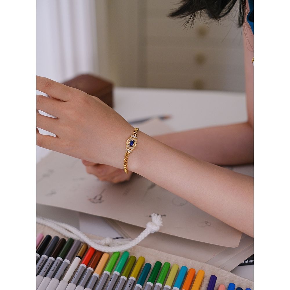 Colosseum Original Design Retro Palace-Style High-End Thick and Exquisite Niche Lapis Lazuli Bracelet for Women Beads
