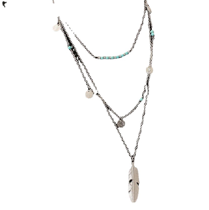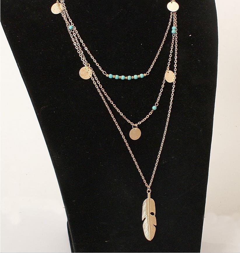 European and American cross-border fashion style necklace retro simple turquoise beaded sequins multilayer leaf necklace wholesale