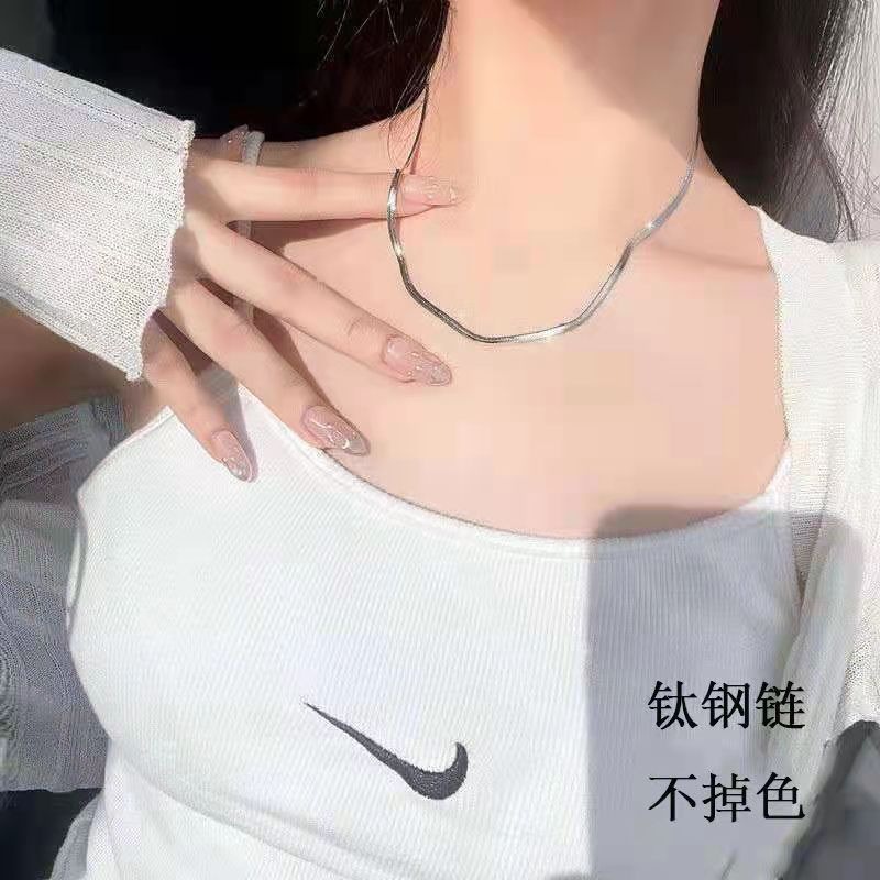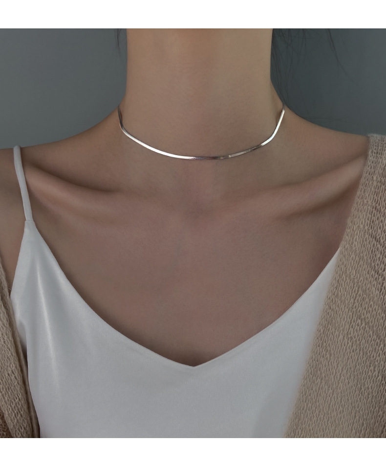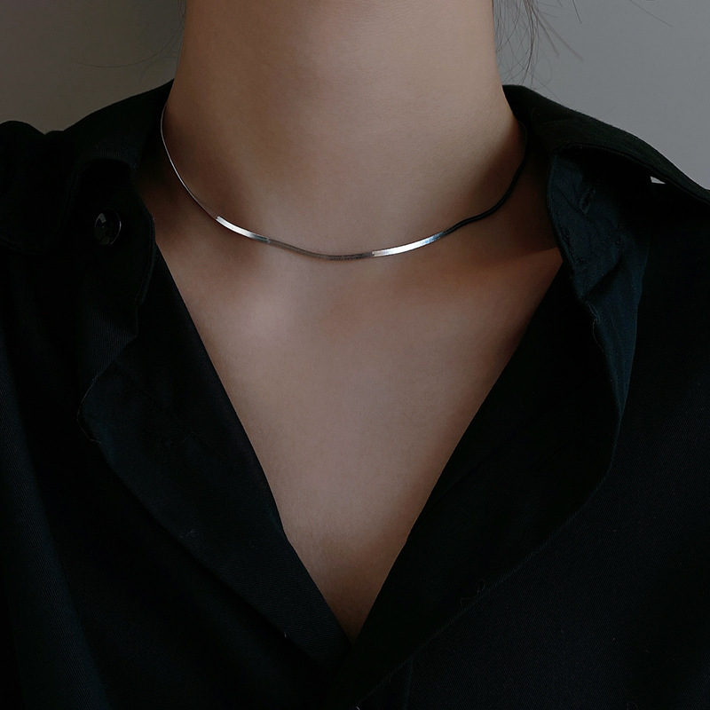 Closed-eye style minimalist cold style high-grade snake bone necklace female European and American niche temperament clavicle chain male necklace