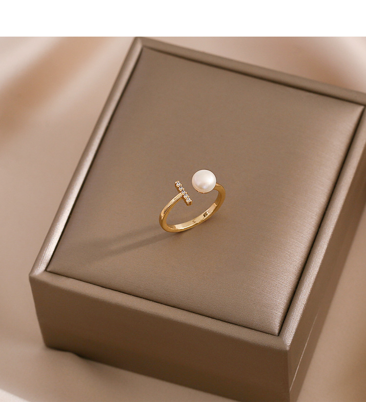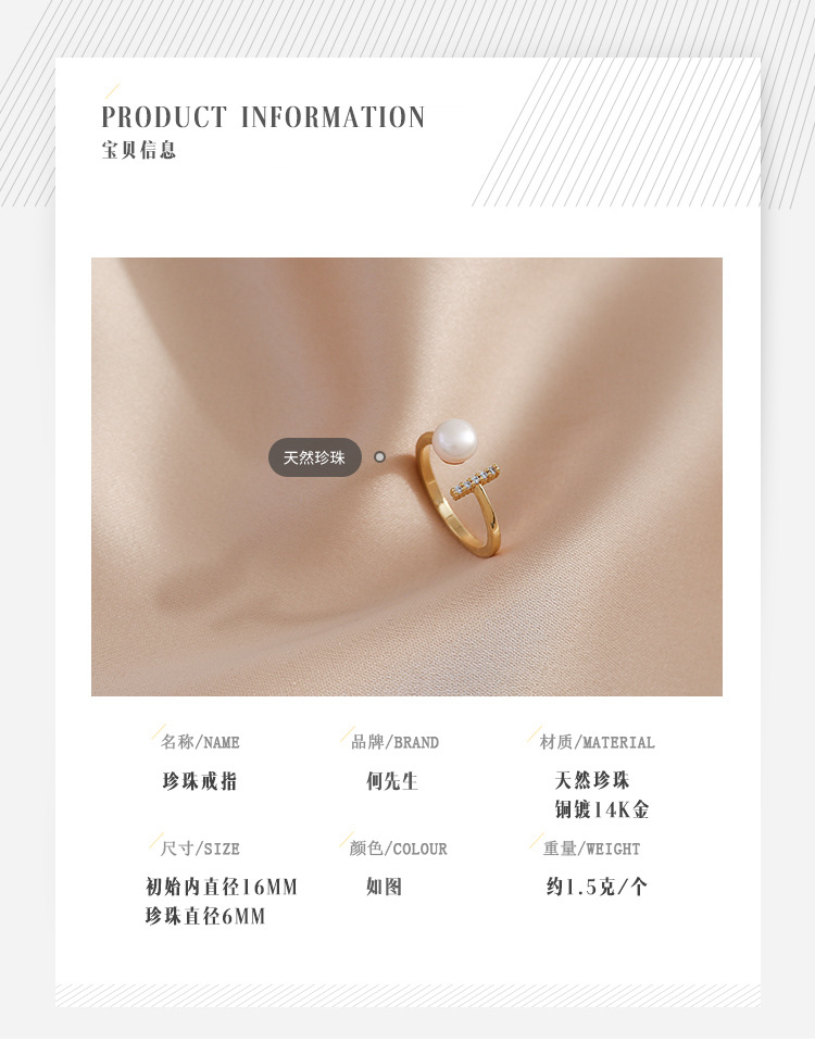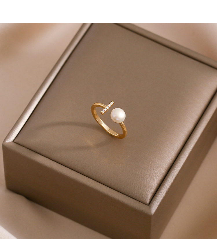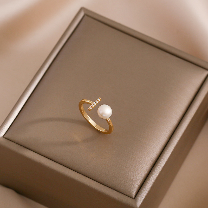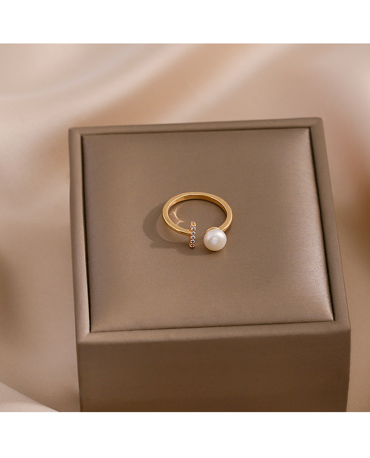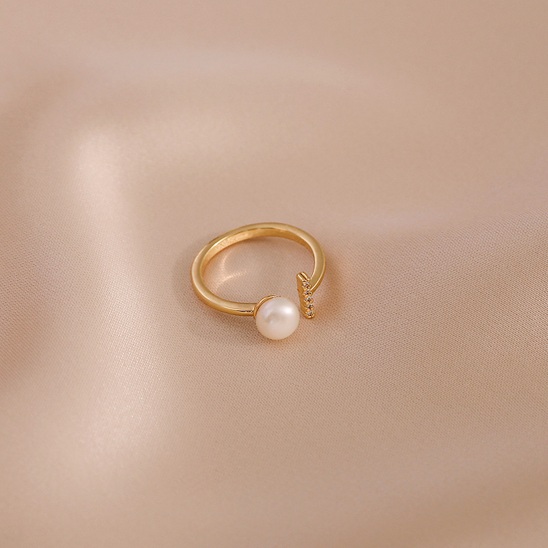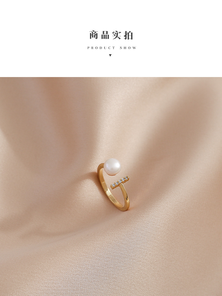 Korean Natural Freshwater Pearl Ring Women's Fashionable All-Match Simple Cold Style Handmade Opening Adjustable Dieting Ring