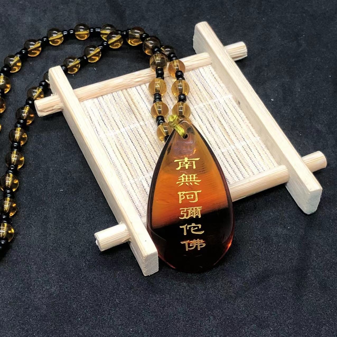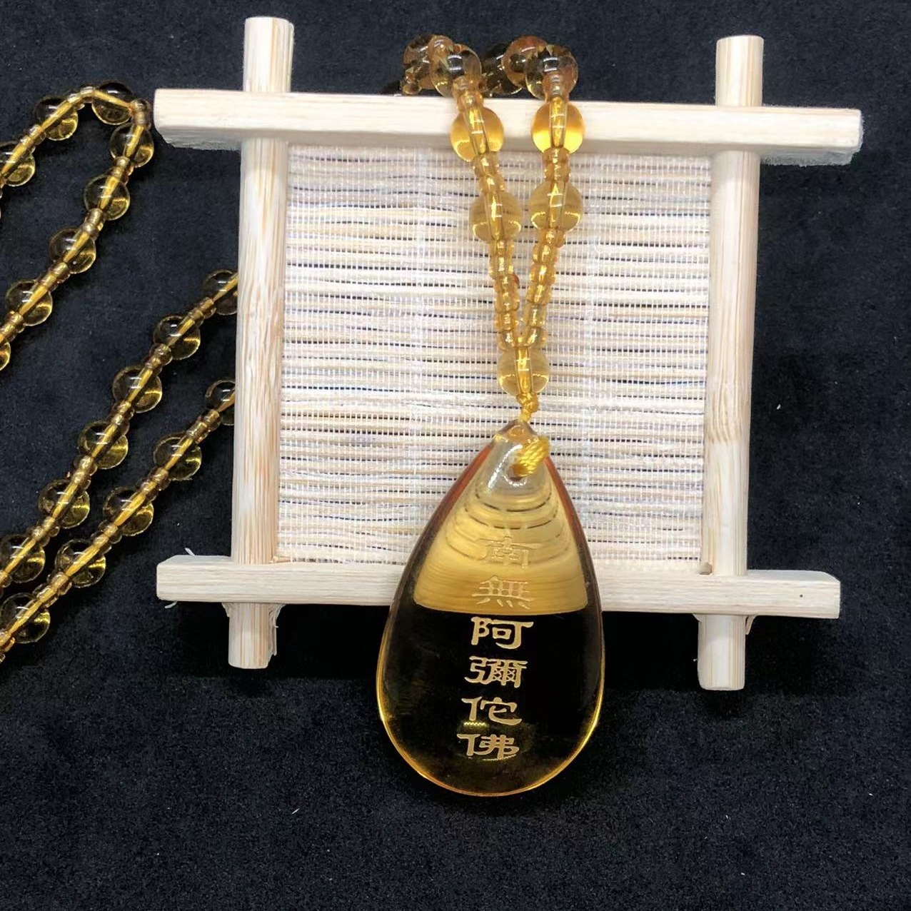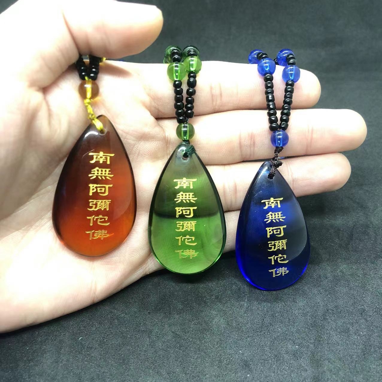 Coloured Glaze Drop-Shaped Namo Amitabha Pendant Citrine Drip Water Necklace Temple Buddha Card Woolen Chain