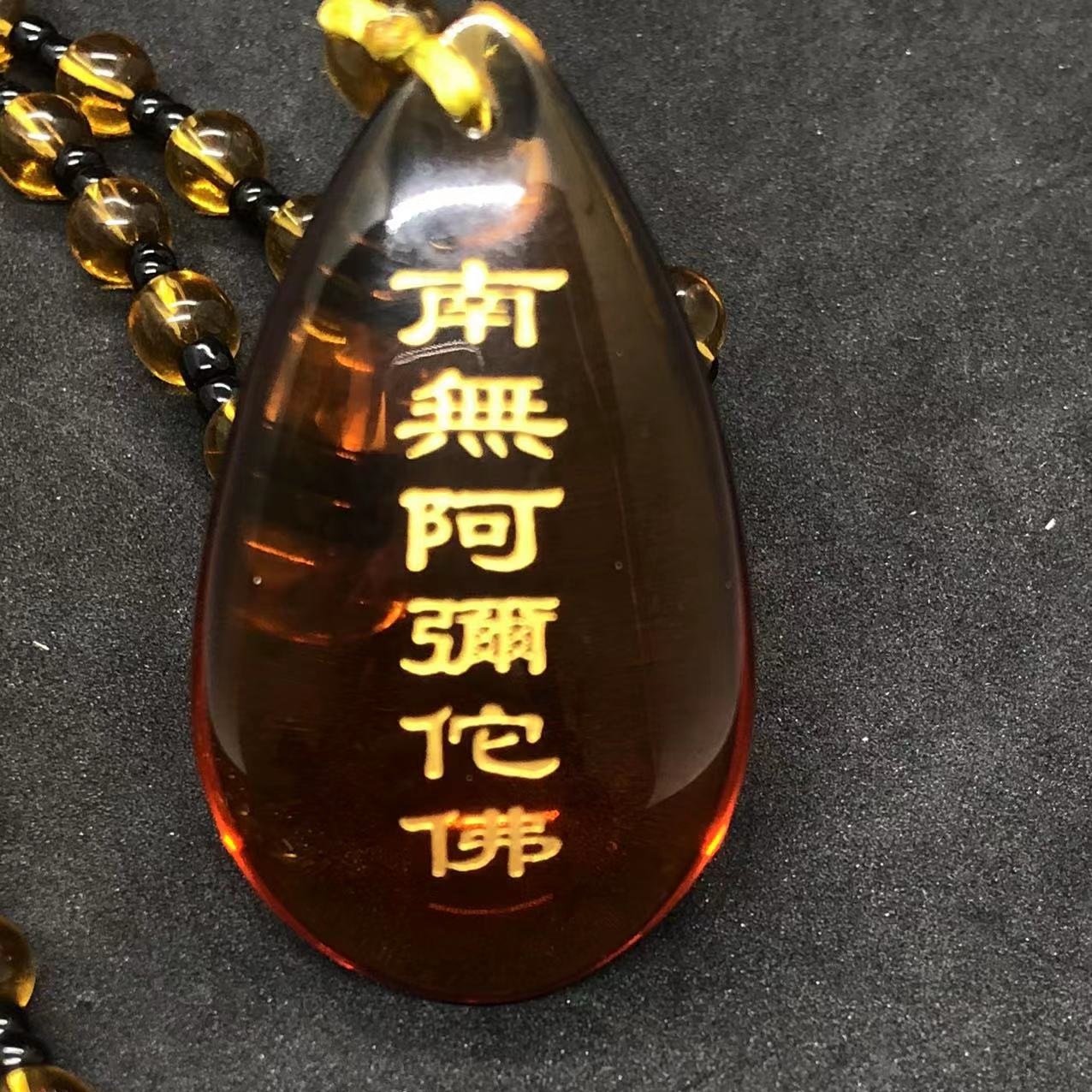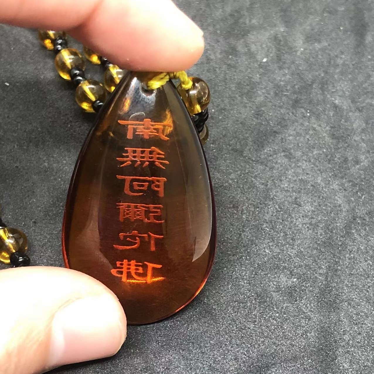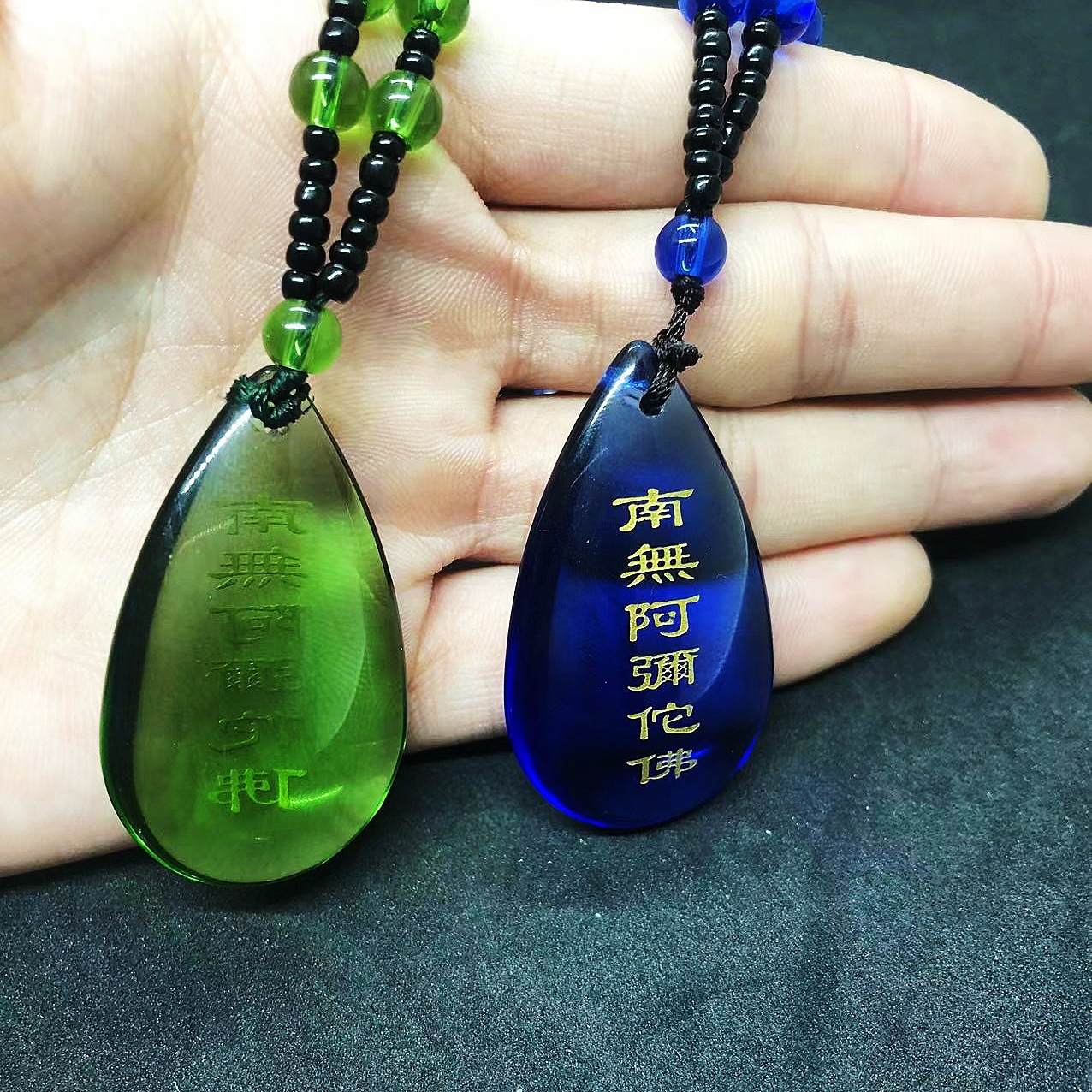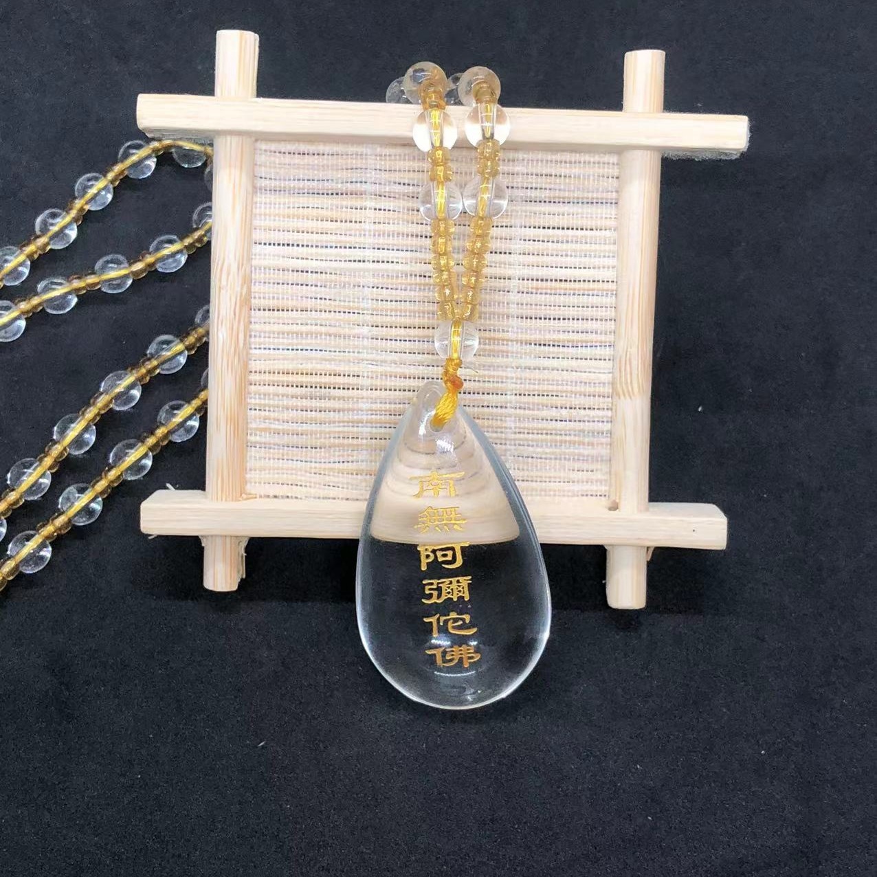 Coloured Glaze Drop-Shaped Namo Amitabha Pendant Citrine Drip Water Necklace Temple Buddha Card Woolen Chain
