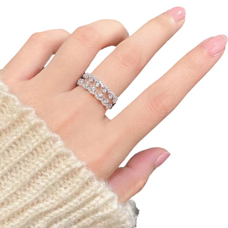 Hui Zhiyi Jewelry 2023 New 925 Sterling Silver Lace Ring Full Diamond European and American Style Zircon Women's Ring