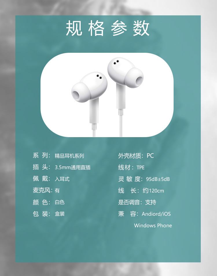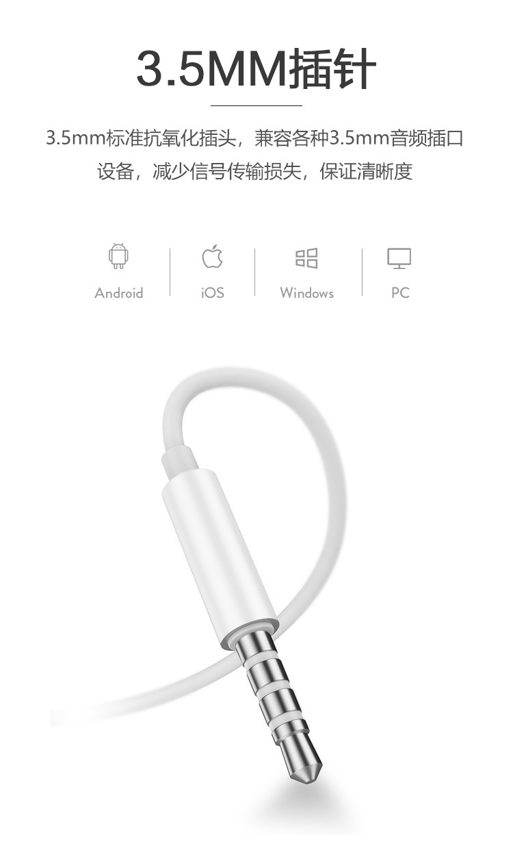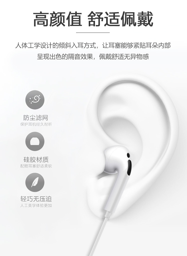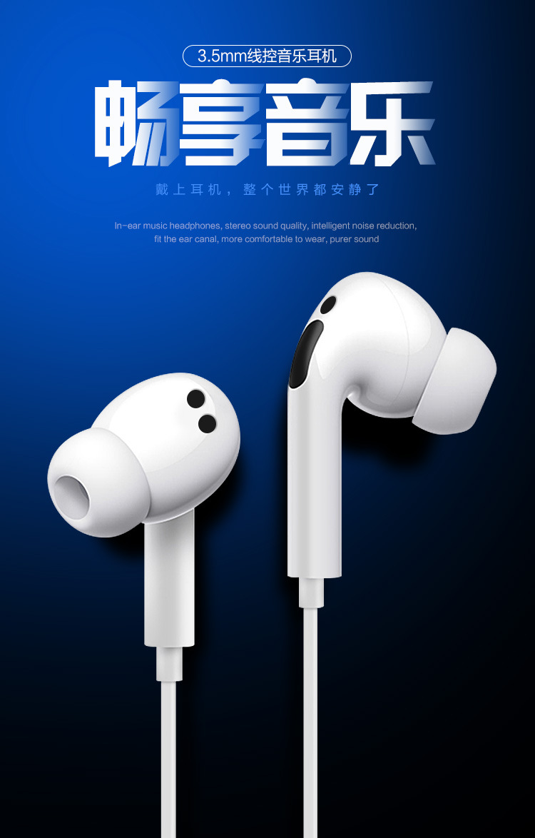 For vivo Xiaomi Android smartphone 3.5mm in-ear wire control call crystal box headset wired batch