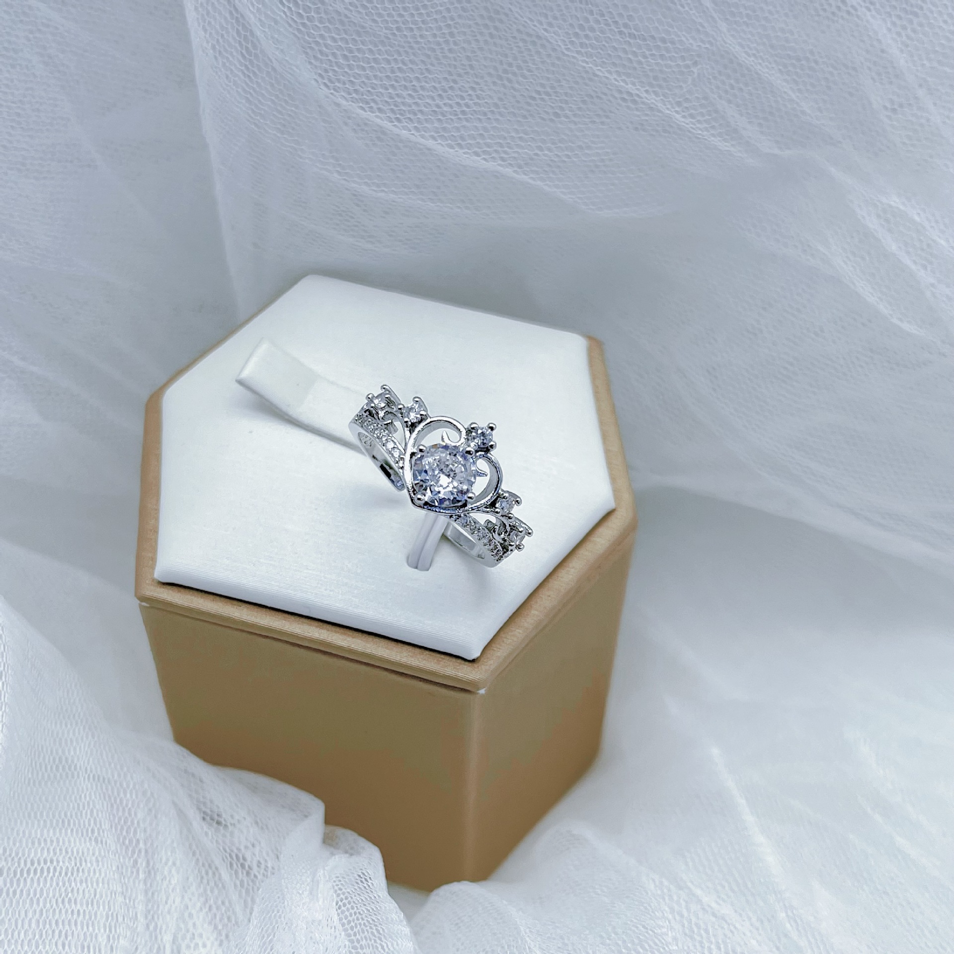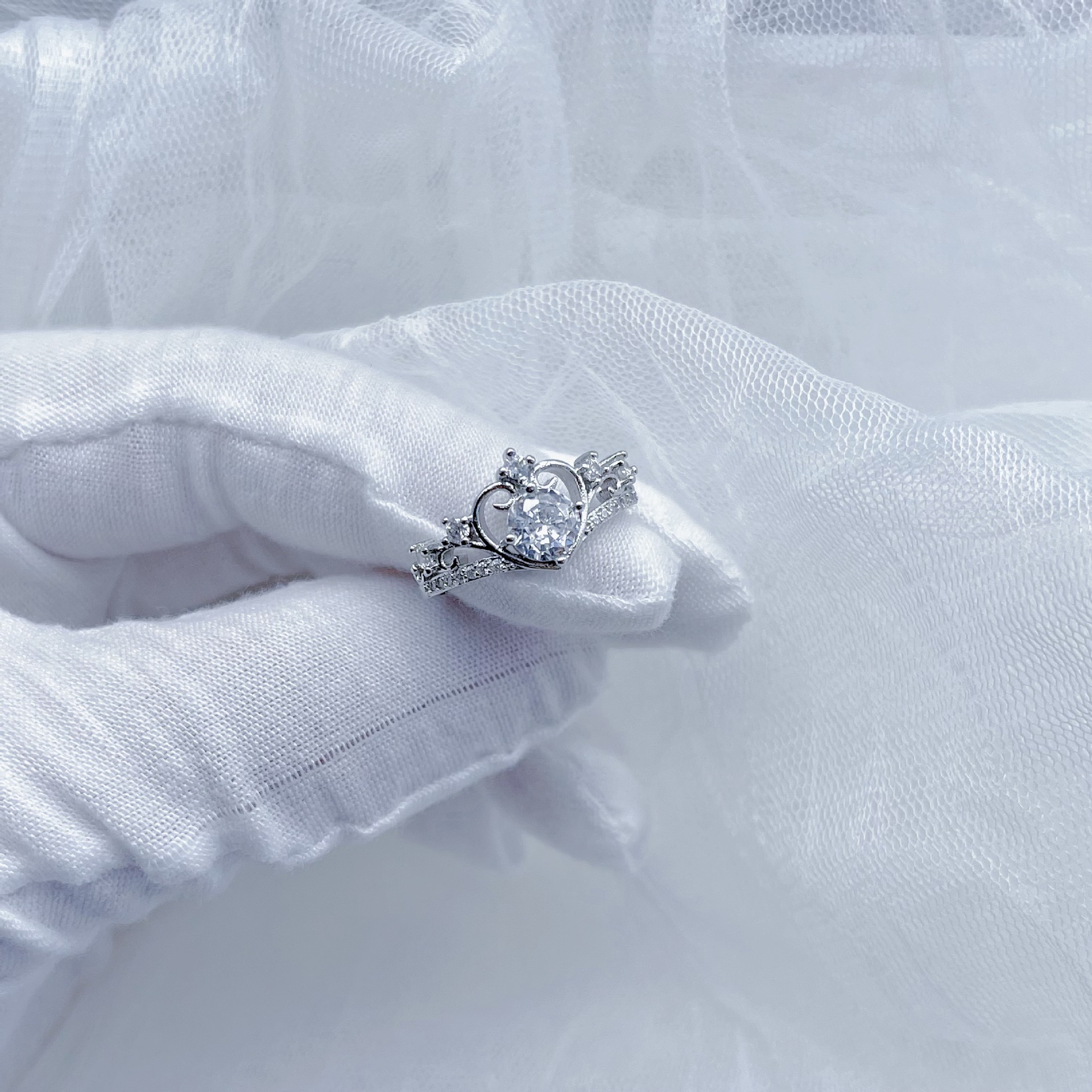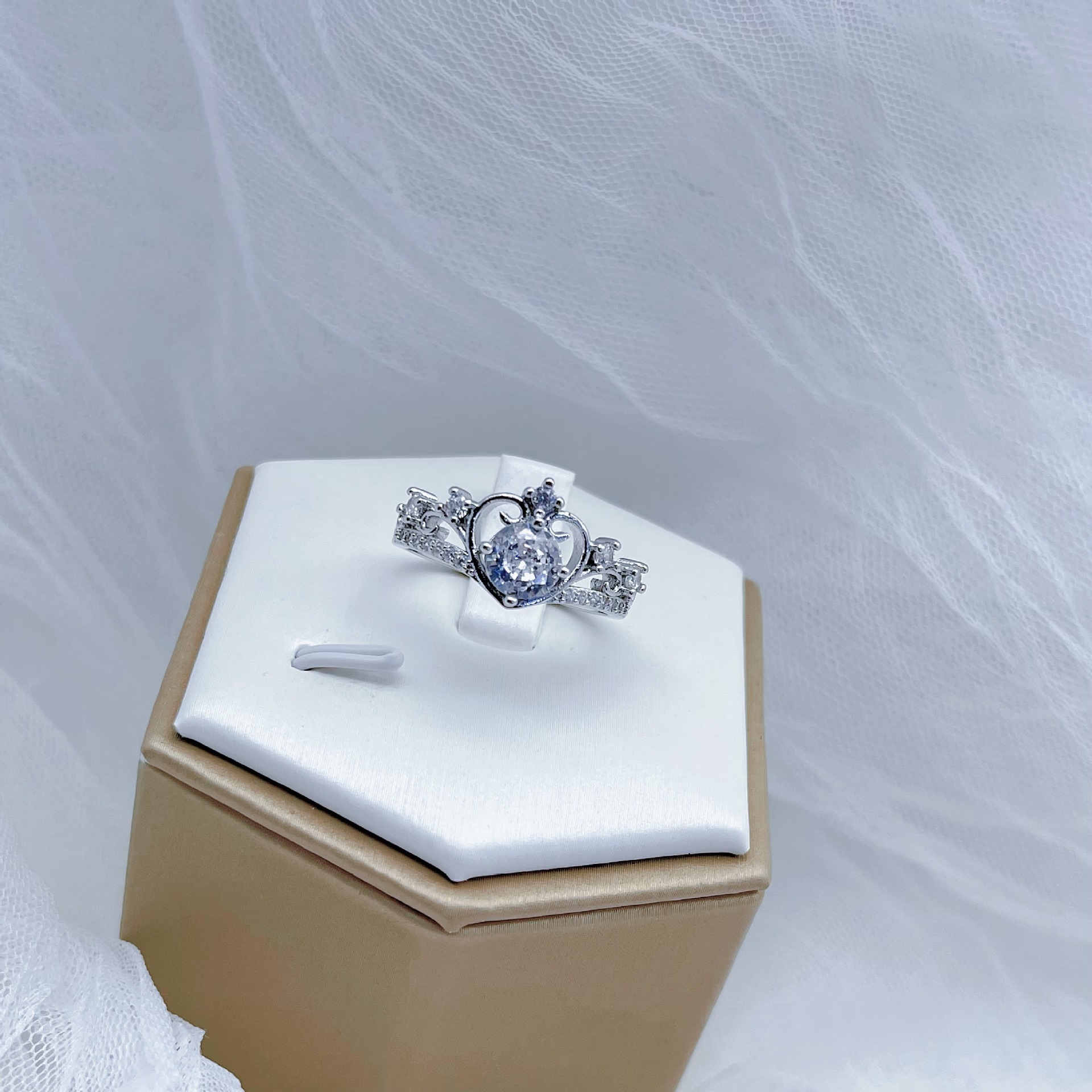 Internet Celebrity Live Broadcast New Fashion Hot Selling Crown Goddess Opening Ring All-match Heart-shaped Love Fairy Wedding Diamond Ring