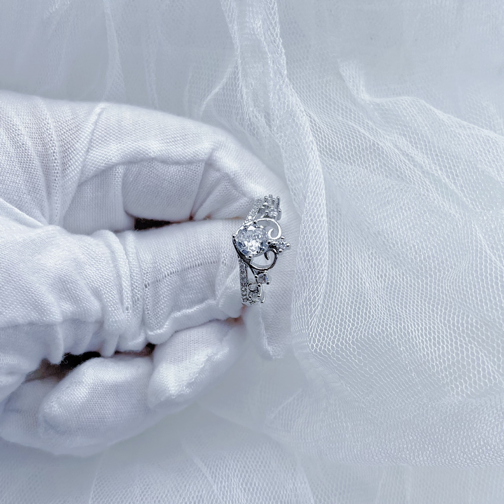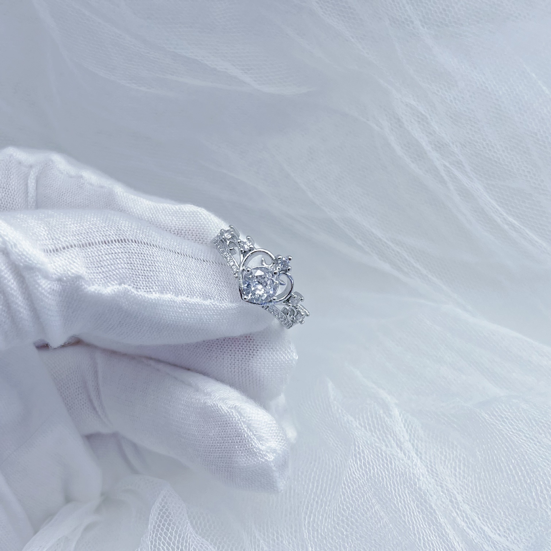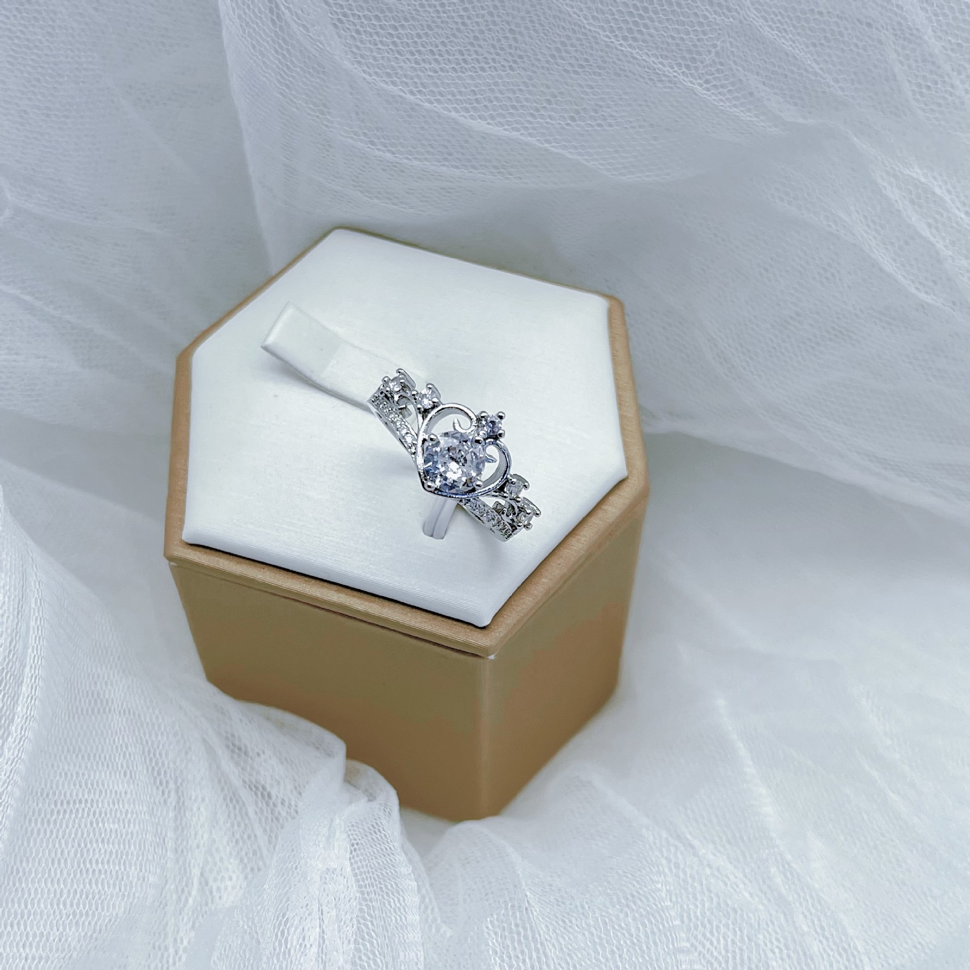 Internet Celebrity Live Broadcast New Fashion Hot Selling Crown Goddess Opening Ring All-match Heart-shaped Love Fairy Wedding Diamond Ring