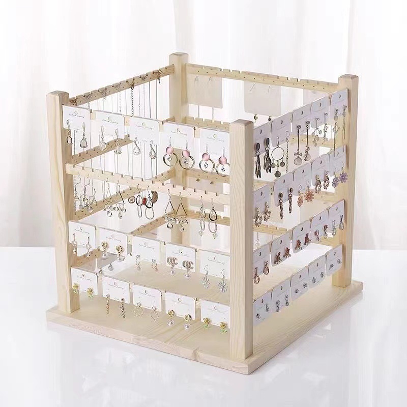 Solid Wood Earring Rack Hanging Necklace Earrings Rack Manual Rotating Jewelry Large Capacity Jewelry Rack Jewelry Display Props