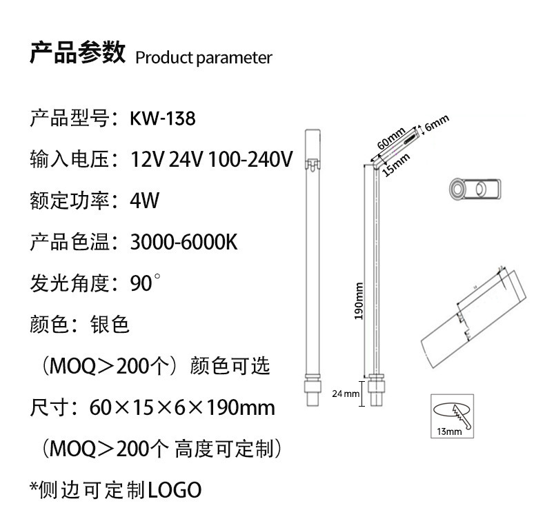 Customized High-End Jewelry Jewelry Lamp Luxury Display Cabinet Pole Lamp Watch Counter Lamp Glasses Cabinet Spotlight
