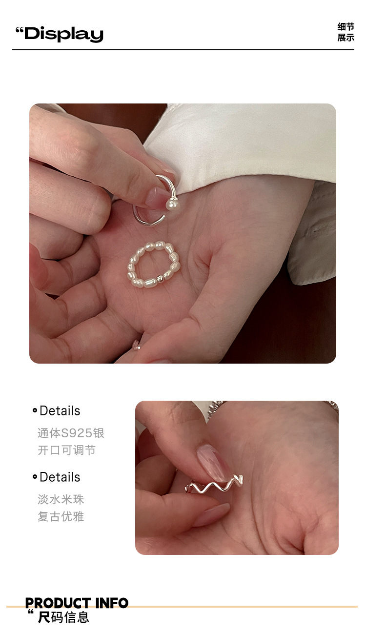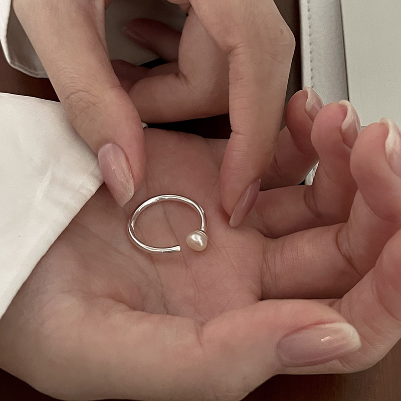 Natural Freshwater Pearl 925 Sterling Silver Ring Simple Fresh Niche Hand Jewelry Mori Women's All-match ins Style Wholesale