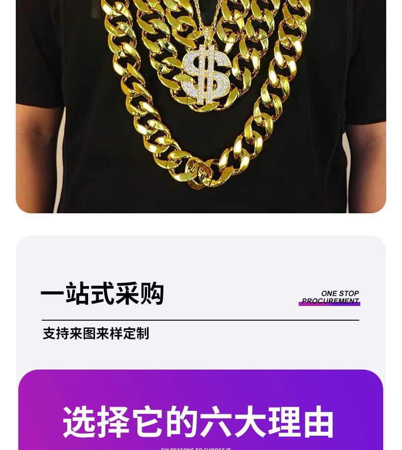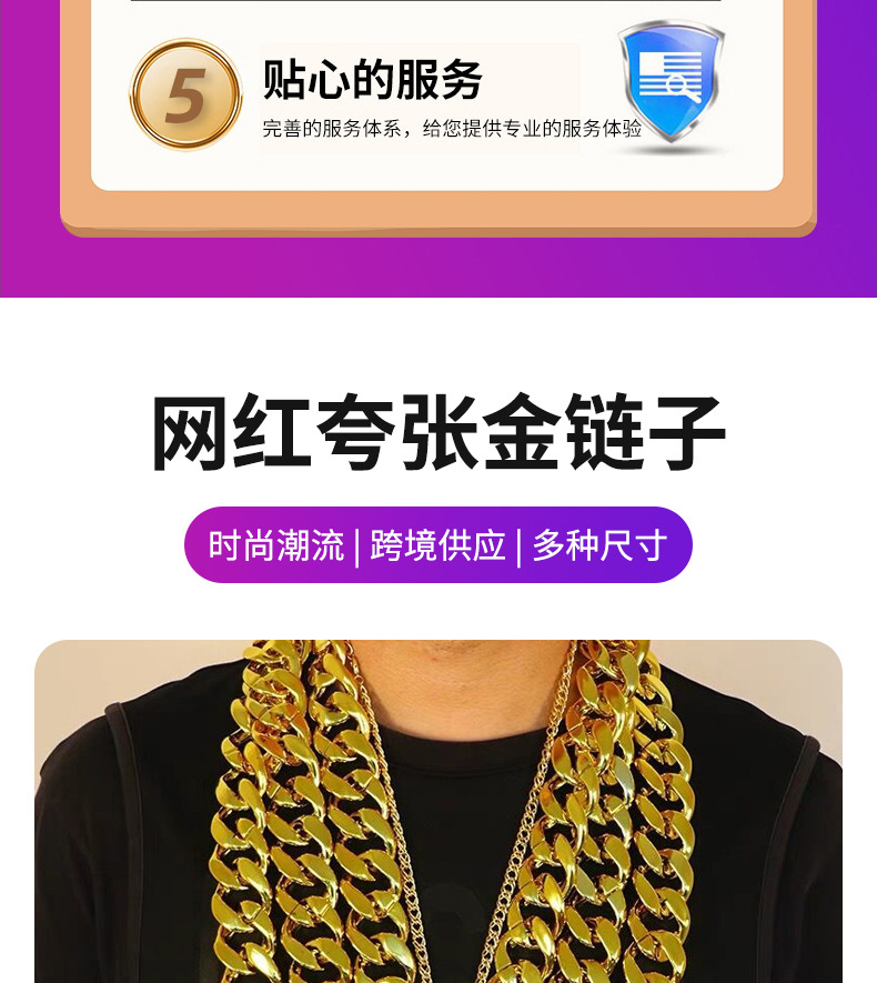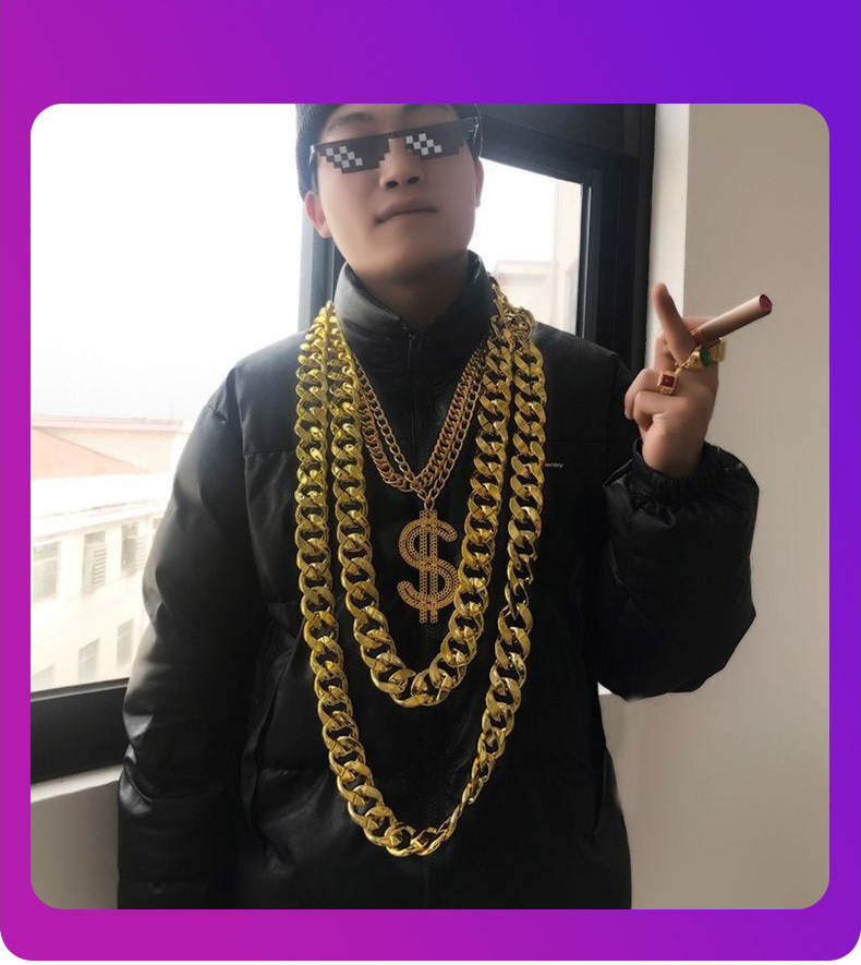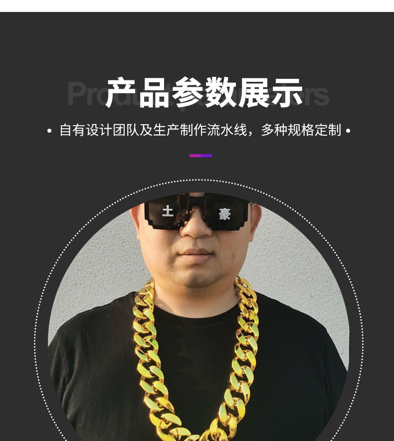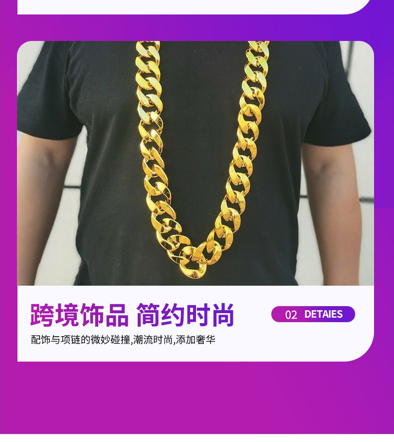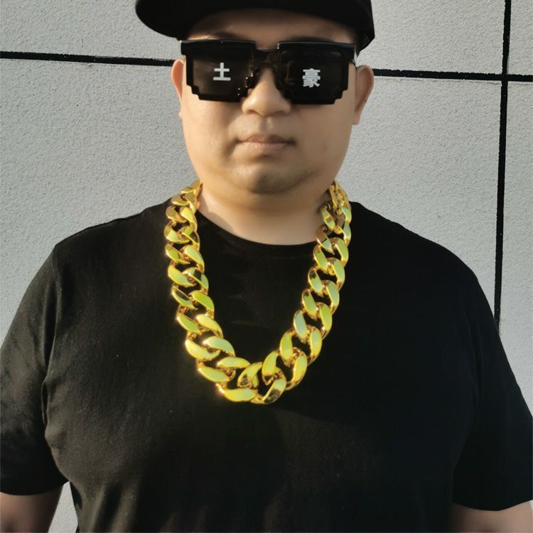 Internet Celebrity Exaggerated Gold Chain Men's Coarse Necklace Hip Hop Local Hero Simulation Gold Plated Chain Live Performance Props