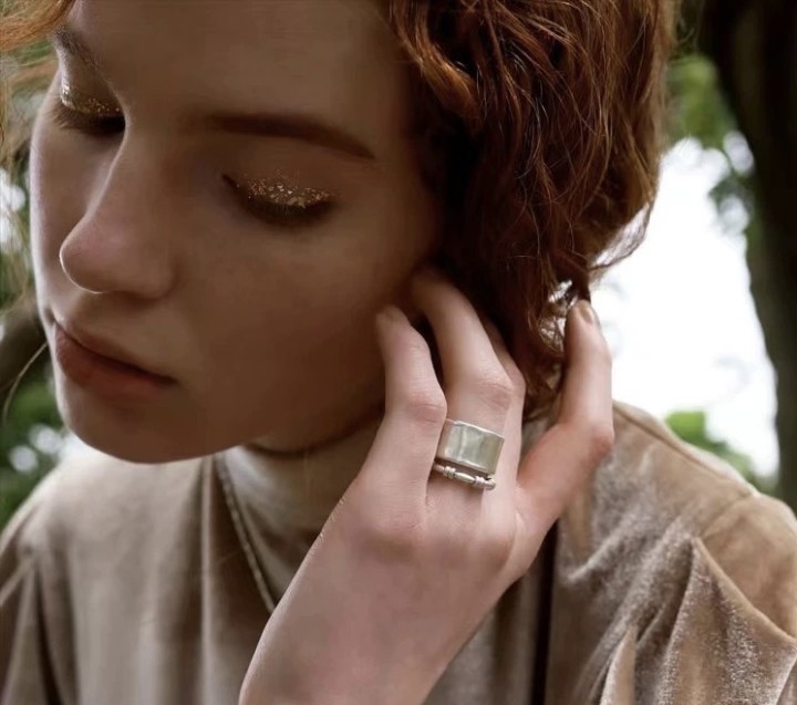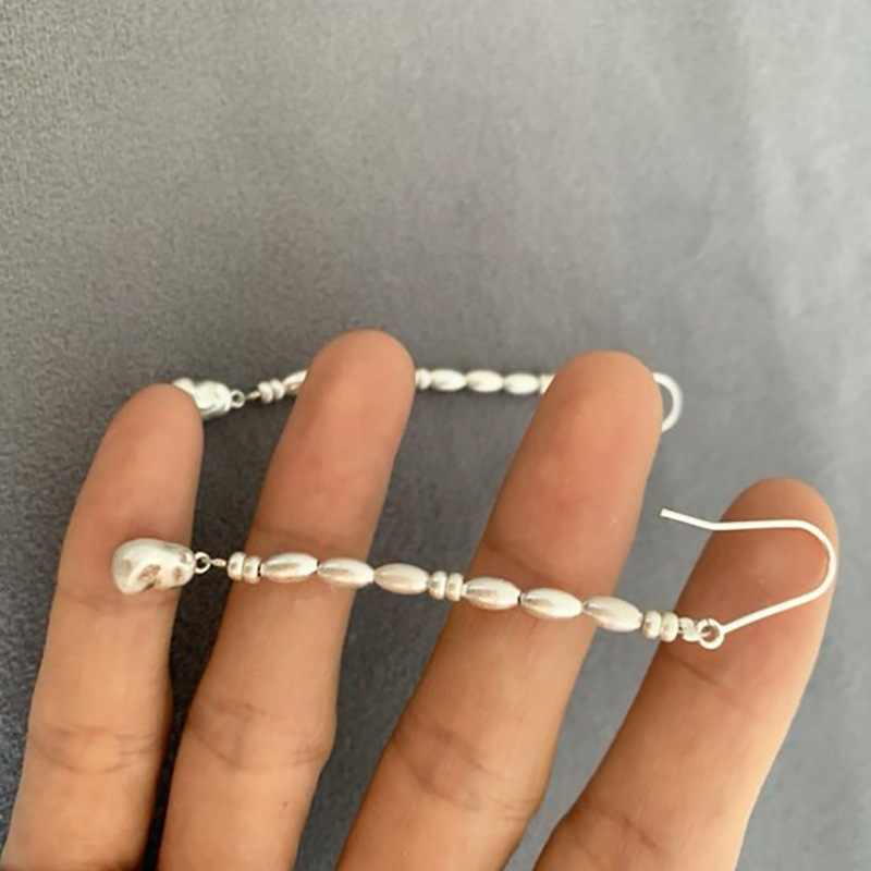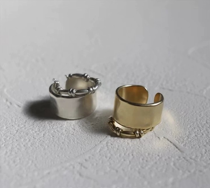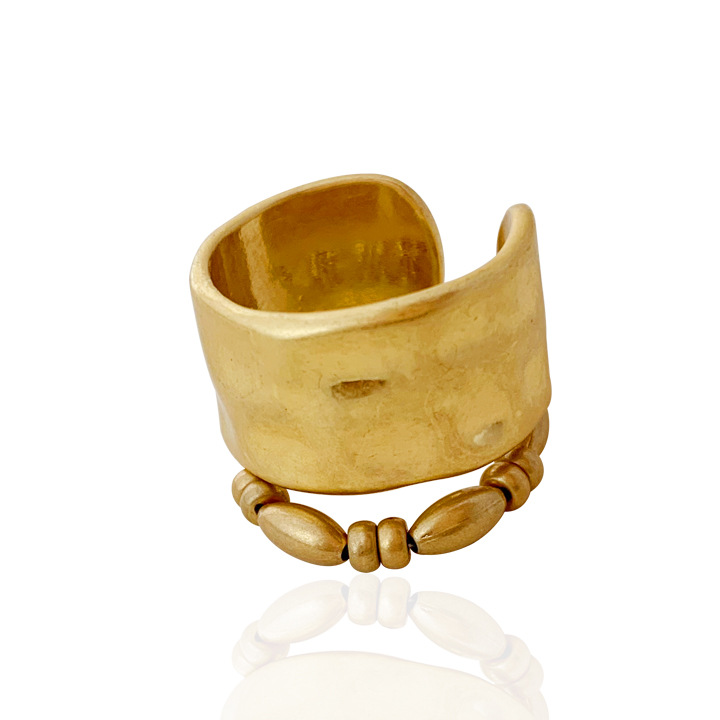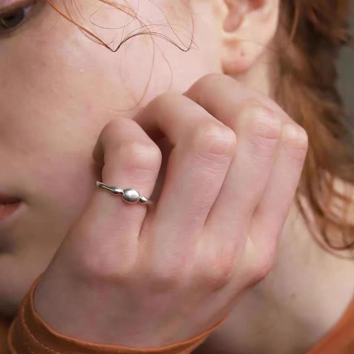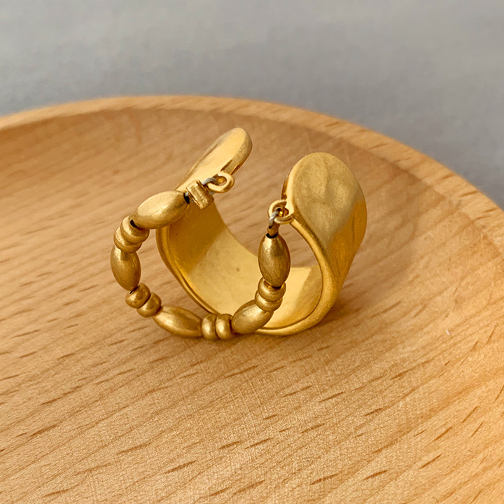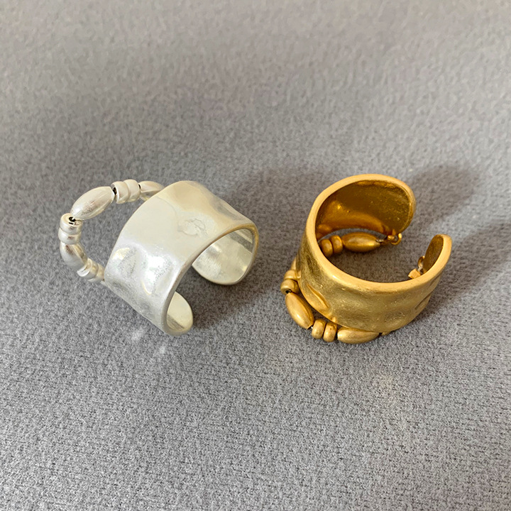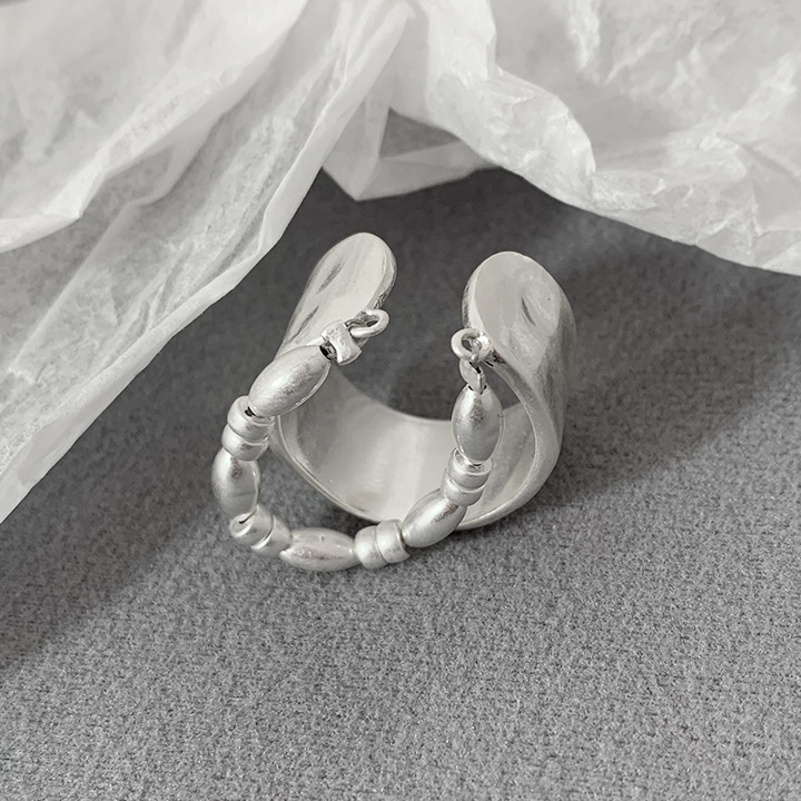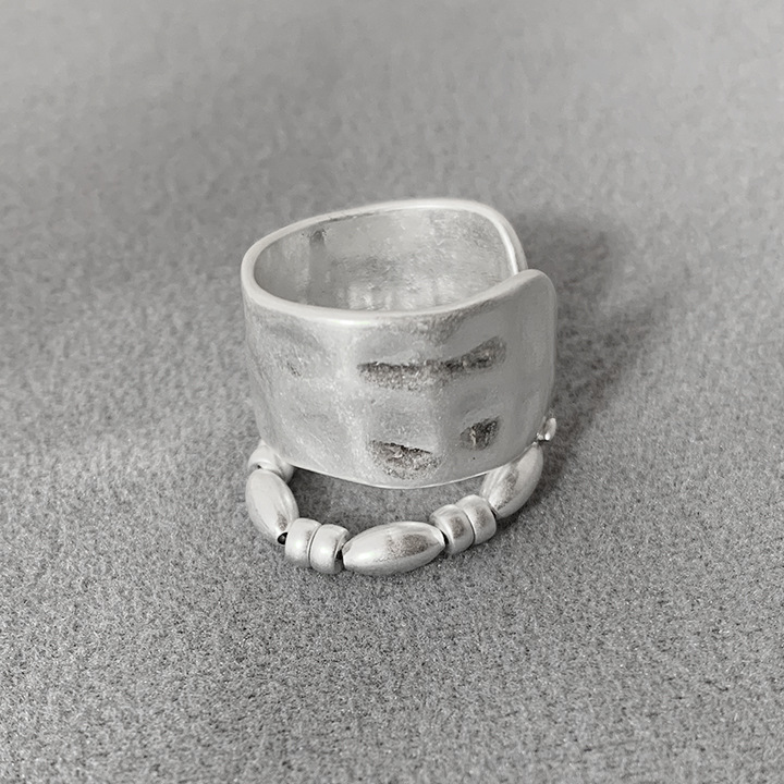 French Design Sense Double Layer Irregular Personality Adjustable Ring Wide Beaded Open Ring Earrings Necklace