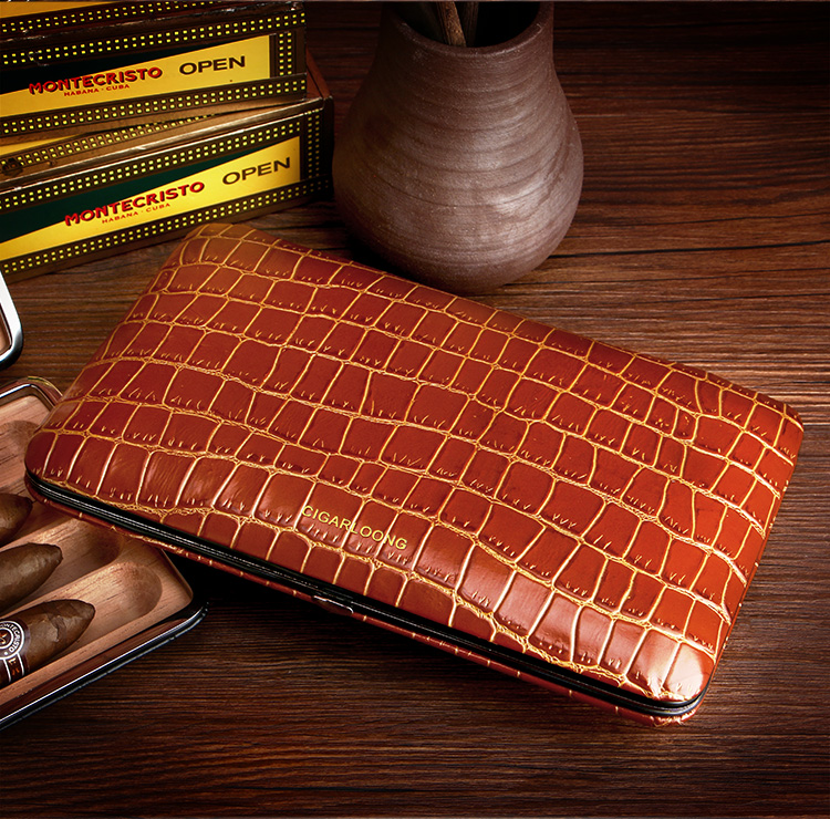 Light and thin cedar wood cigar cover layer cowhide convenient travel cigar box moisturizing leather cover new product