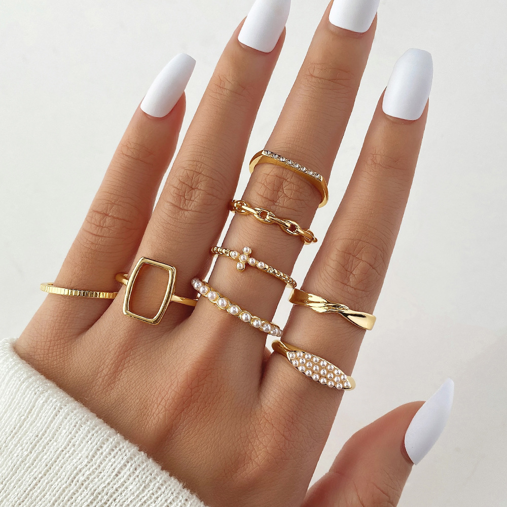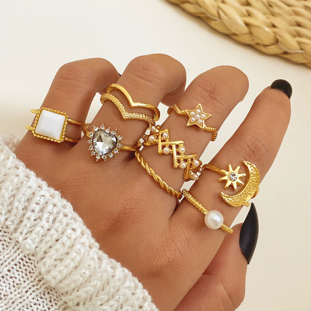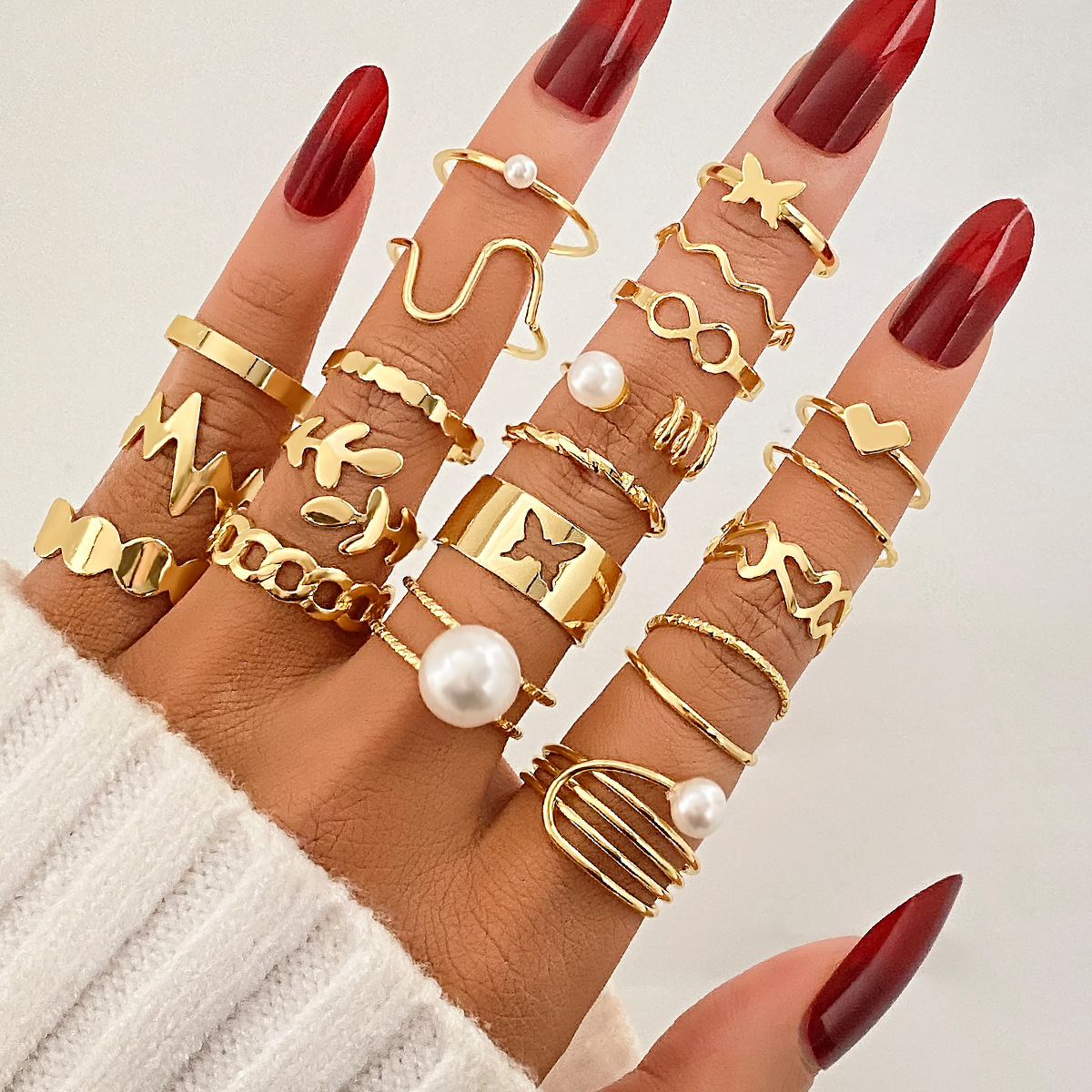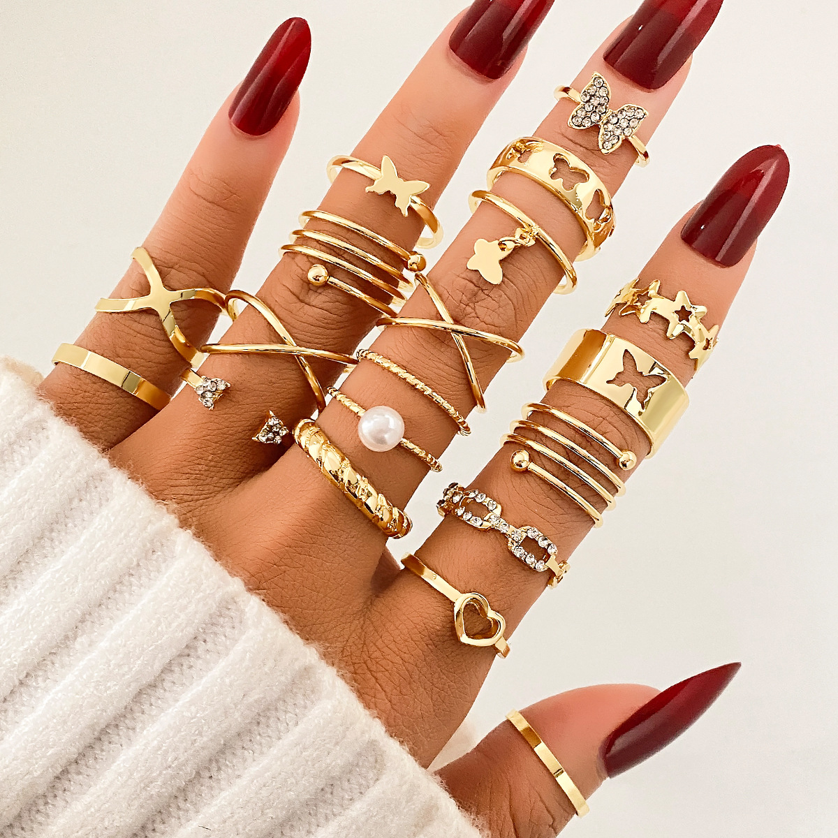 Mu Shang AliExpress Hot-selling Open Multi-joint Ring suit Women's Niche Hollow Love Butterfly Ring 22-piece Set
