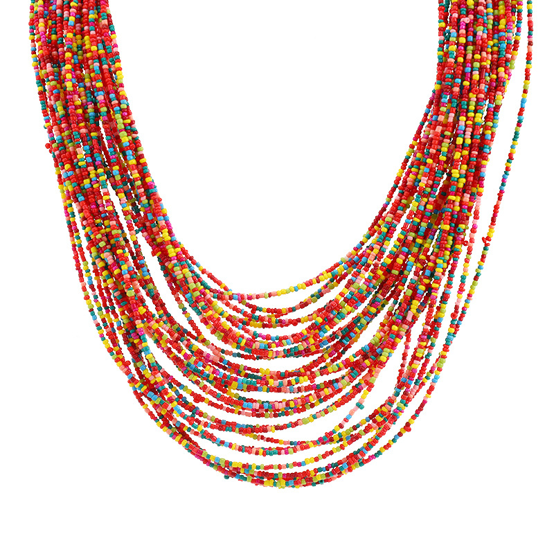 European and American Retro Rice Beads Exaggerated Multi-layer Necklace Ethnic Style Short Bohemian Personalized Women's Sweater Chain Accessories