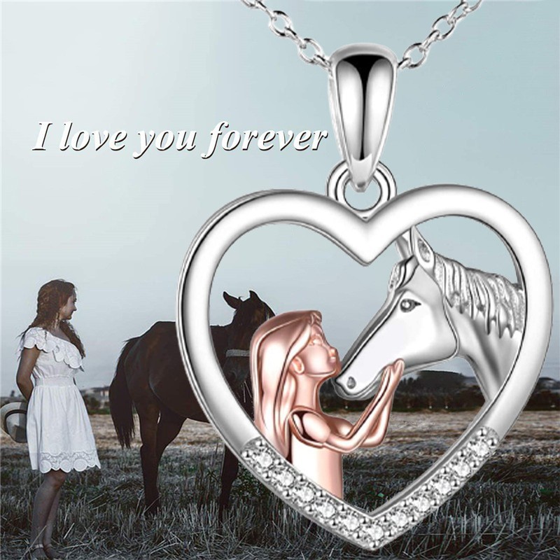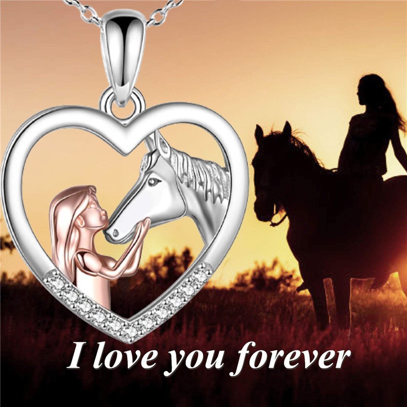 Factory direct European and American fashion 925 girl and horse color separation love heart-shaped pendant heart-shaped necklace women's two-color pendant