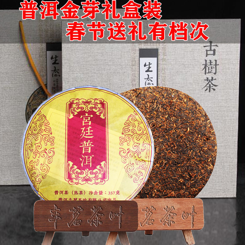 Pu'er Tea Ripe Tea Cake Palace Pu'er Gold Bud Head Famous Tea Leaf Red Yunnan Ripe Tribute Gift Boxed
