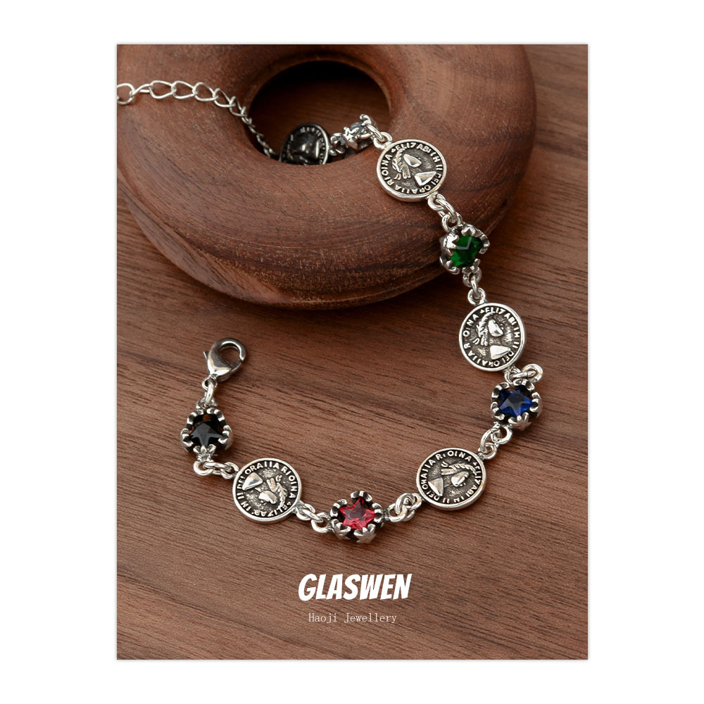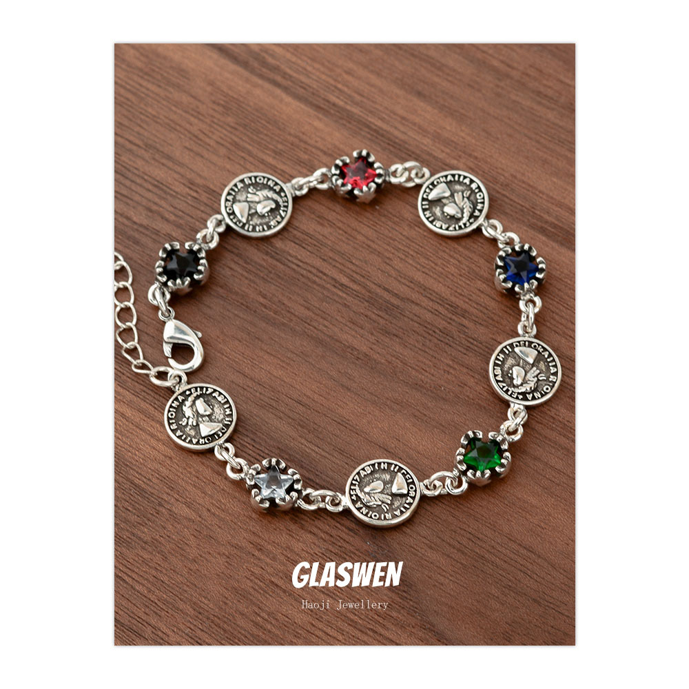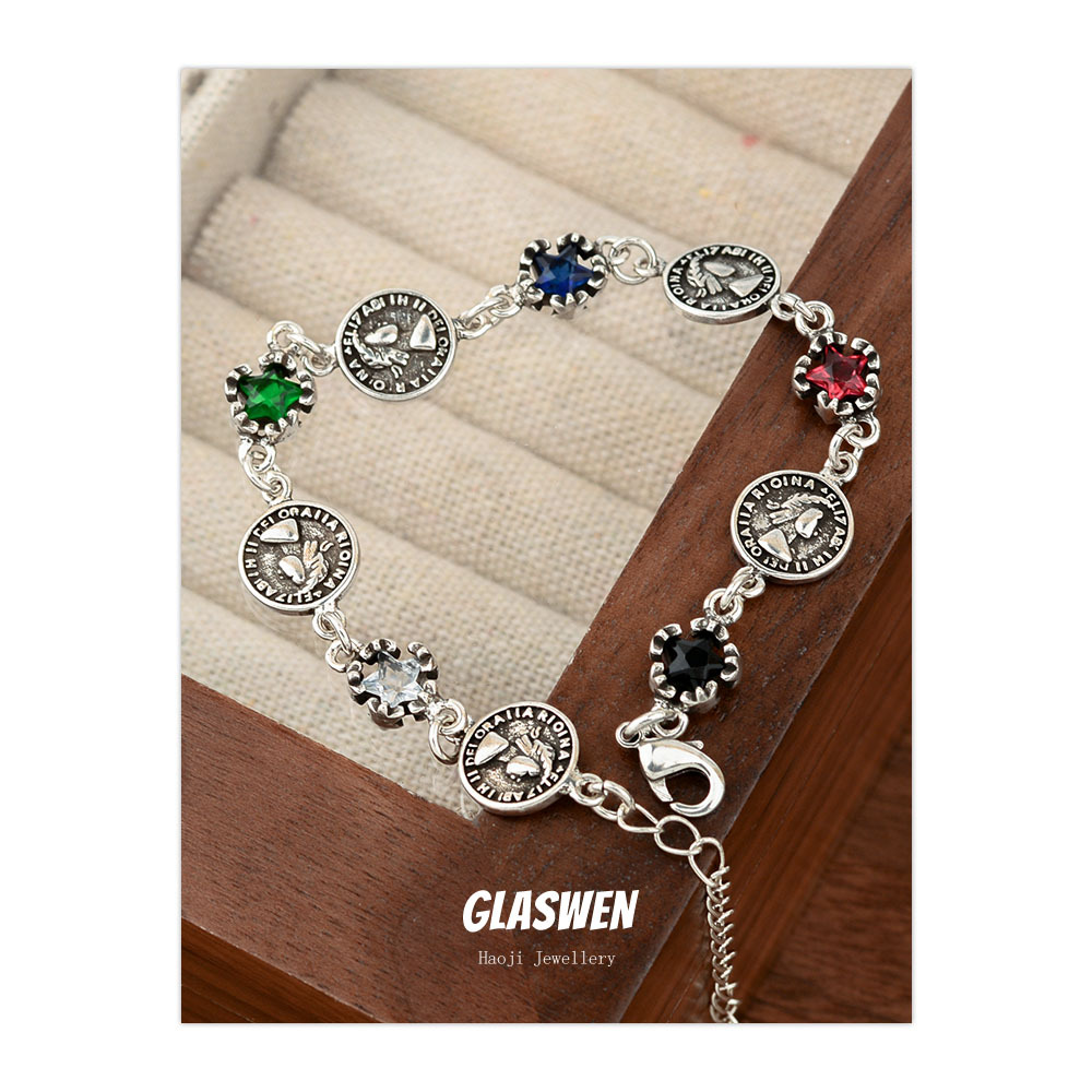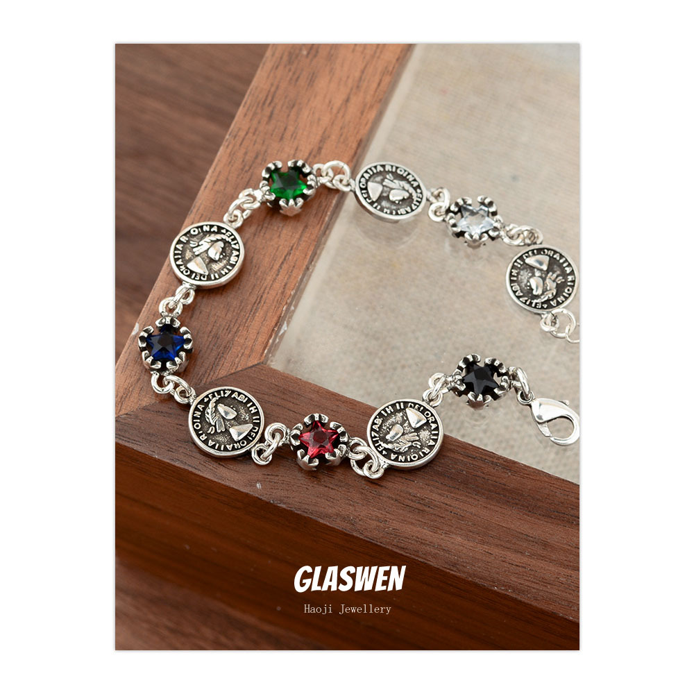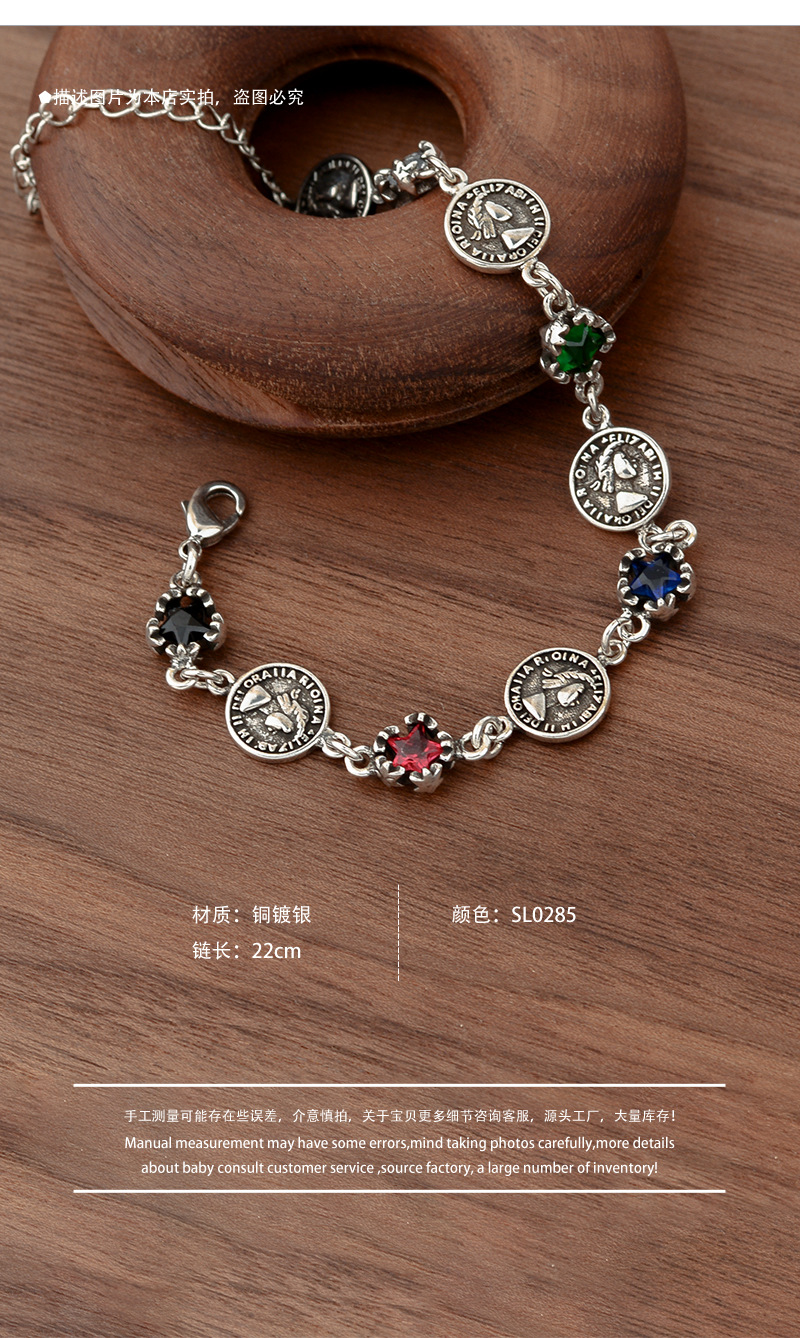 South Korea retro personalized colorful zircon five-pointed star bracelet female temperament portrait geometric round brand hip hop Accessories Wholesale