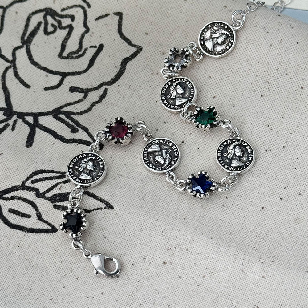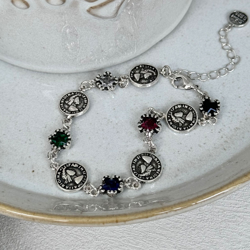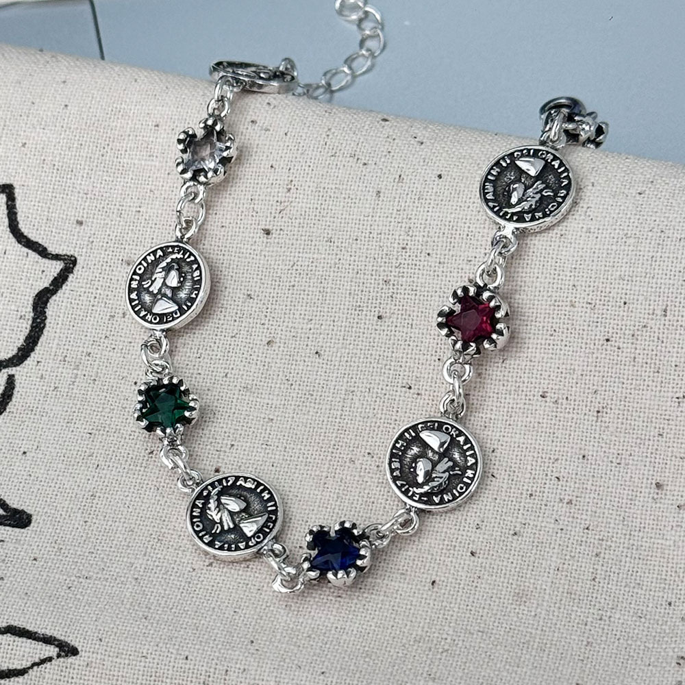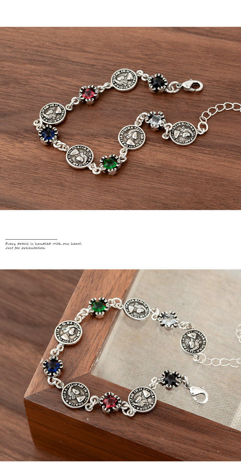 South Korea retro personalized colorful zircon five-pointed star bracelet female temperament portrait geometric round brand hip hop Accessories Wholesale