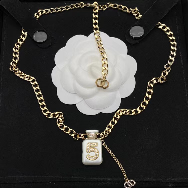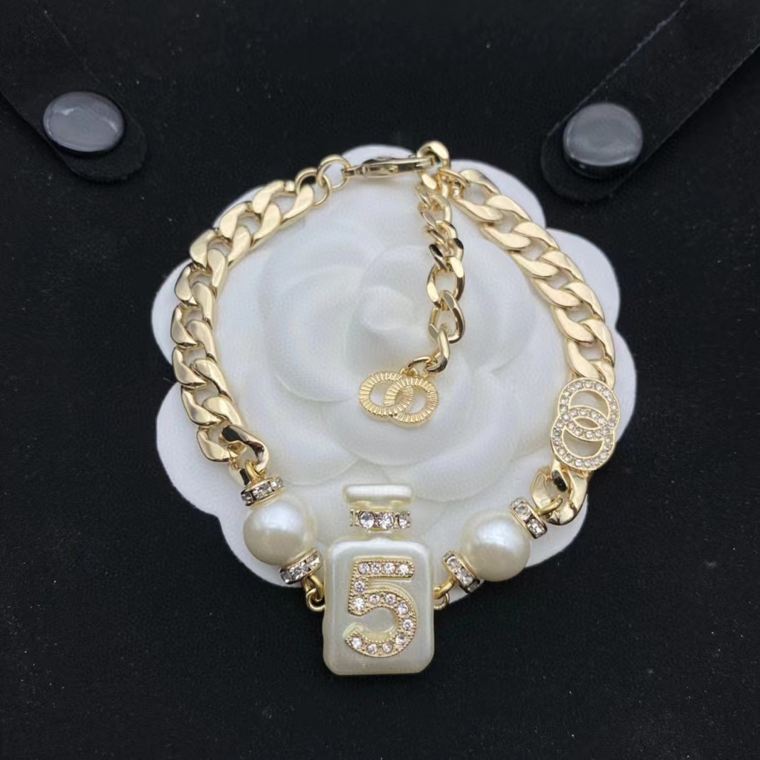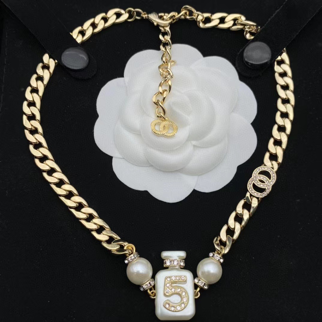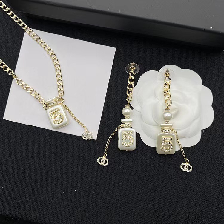 2023 spring and summer new fragrance grandma 5 perfume bottle necklace set earrings c letter bracelet fashion Joker wholesale