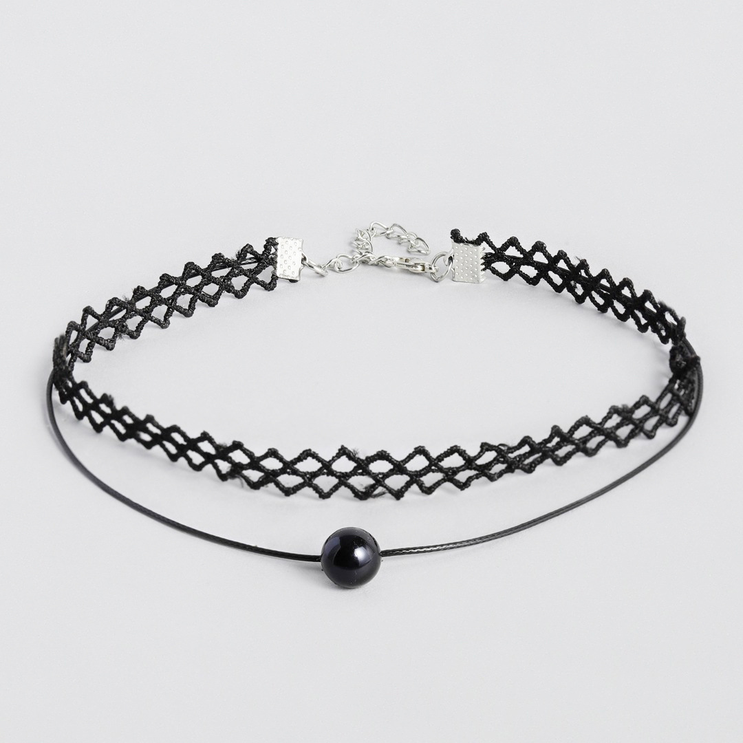 Simple Double Lace Short Collarbone Necklace Simple Necklace Retro Cool choker Black Pearl Necklace