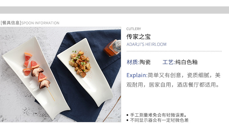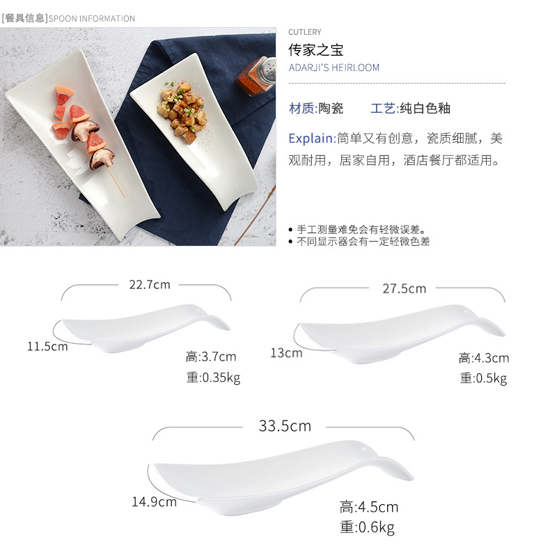 Pure white hotel ceramic tableware plate snack plate sushi plate cold dish snack plate display plate creative display plate