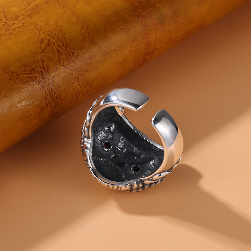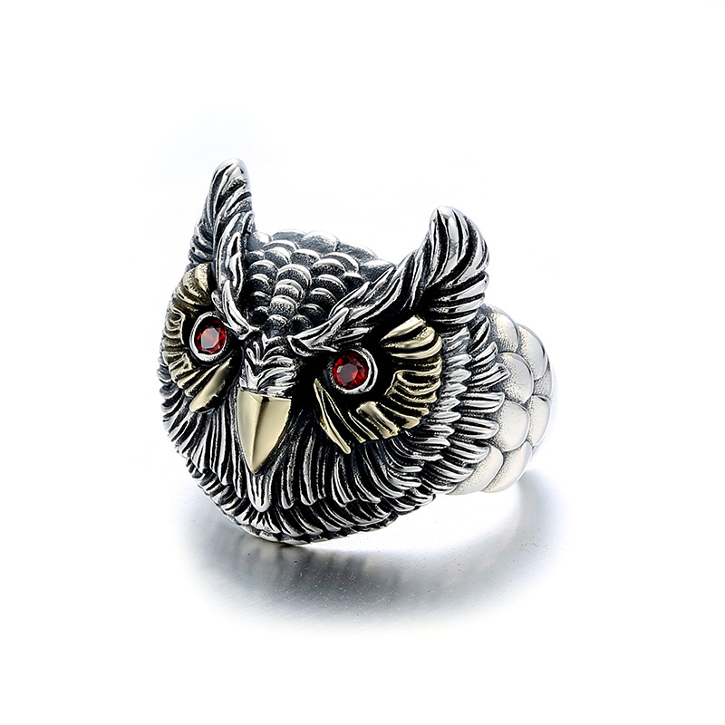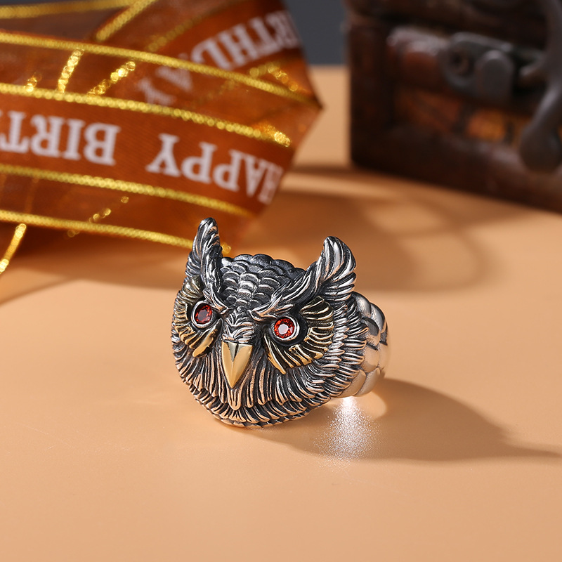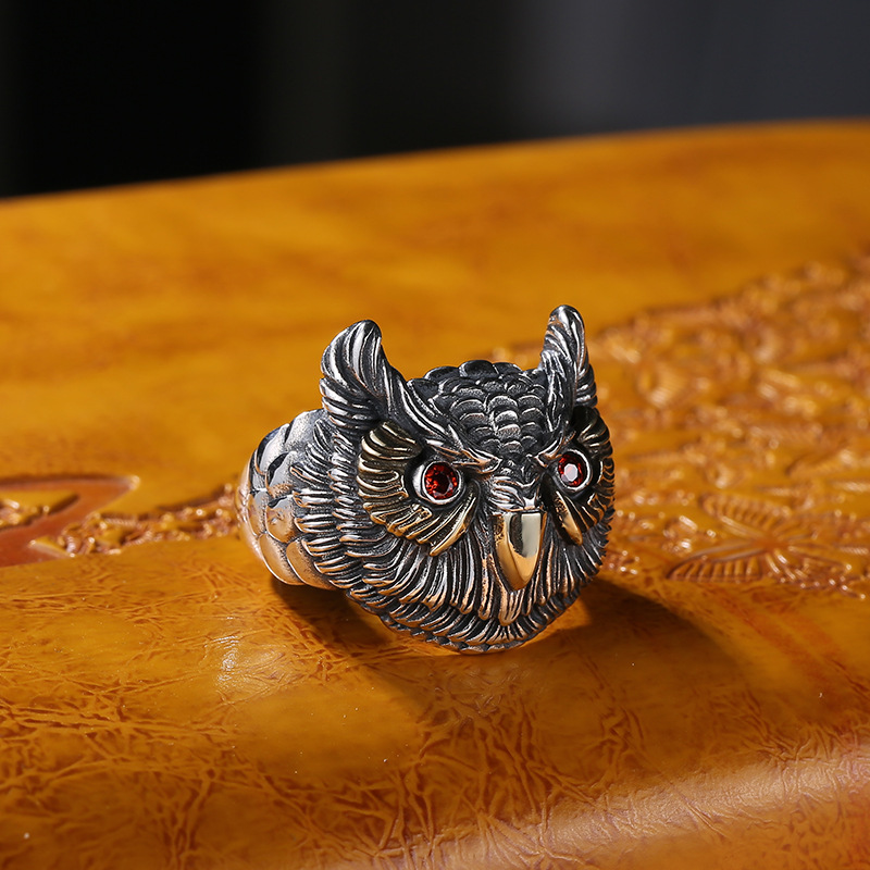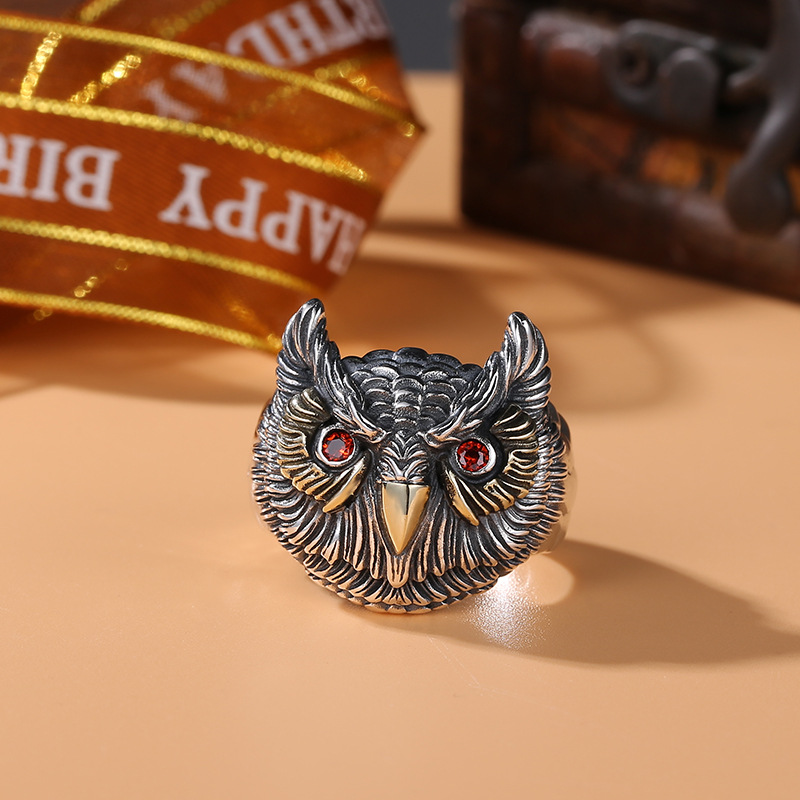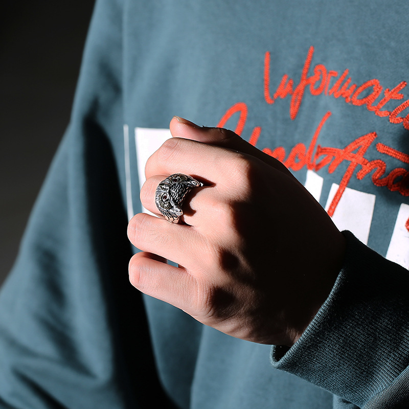 Vintage Owl Ring Trendy Men's Hip-hop Distinctive Open Ring 925 Thai Silver Animal Hand-carved Finger Ring