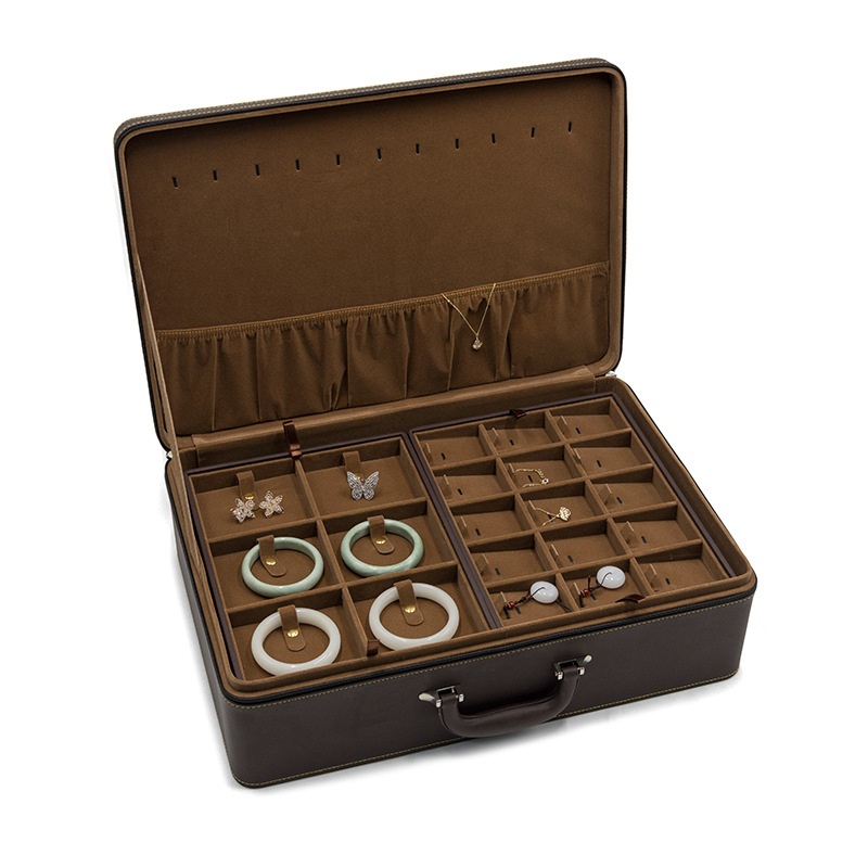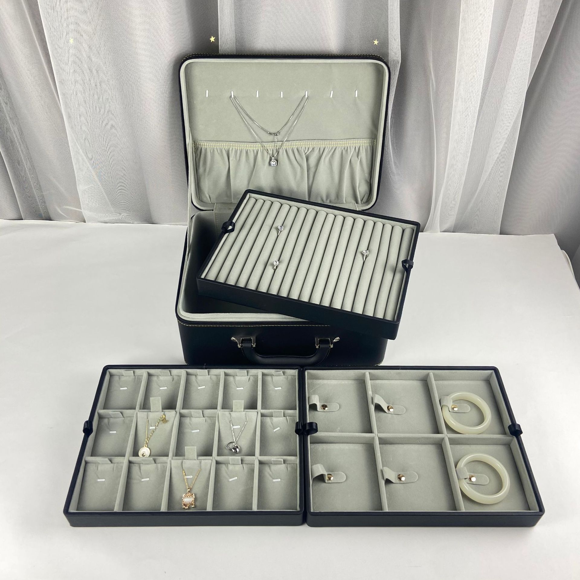 High-grade PU leather jewelry storage box ring necklace multi-layer storage suitcase pendant display storage box