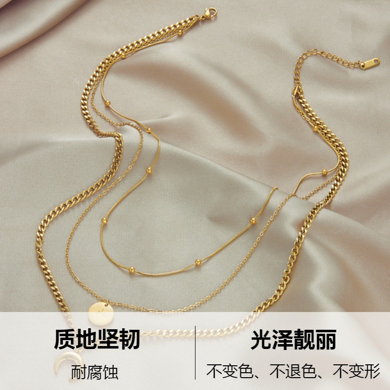 European and American cross-border fashion high-end elegant versatile multi-layer lifting bar metal round brand moon pendant clavicle necklace