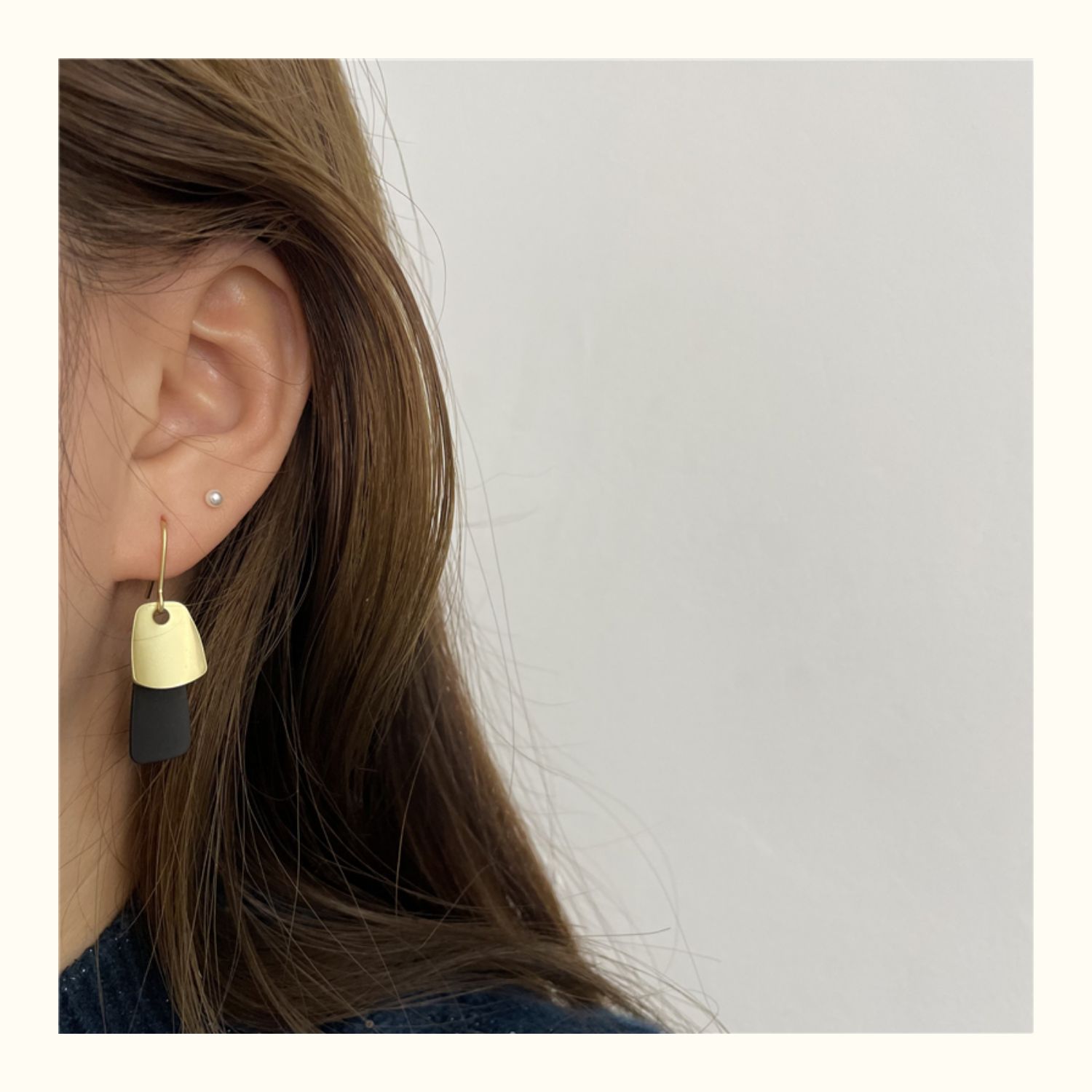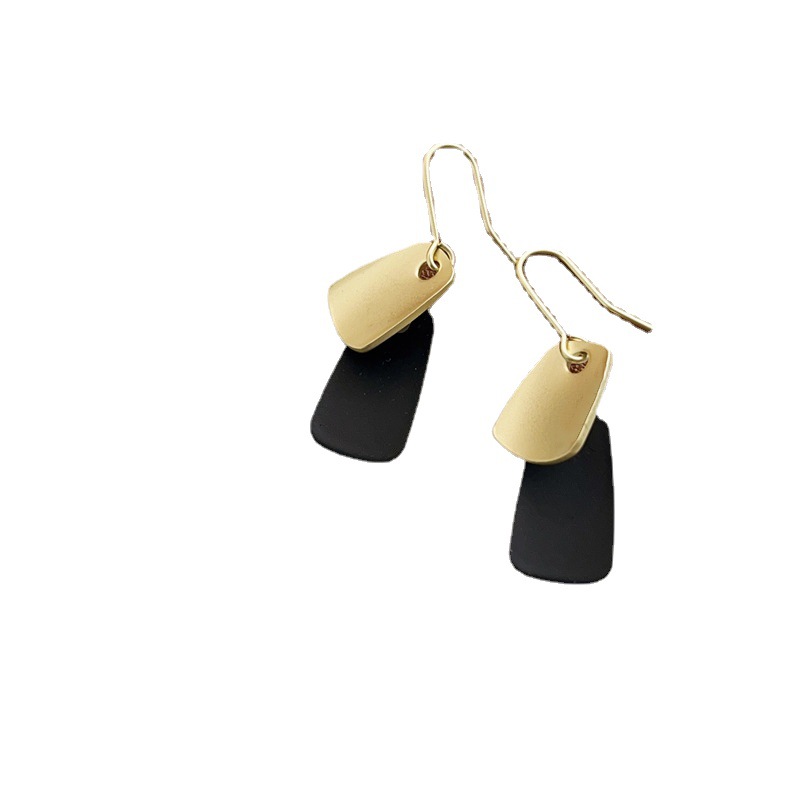 High-grade brass electroplated matte gold earrings women's distinctive gold black contrast geometric earrings simple commuter all-match earrings