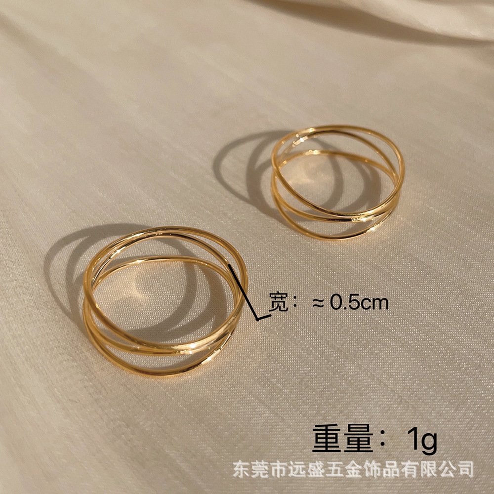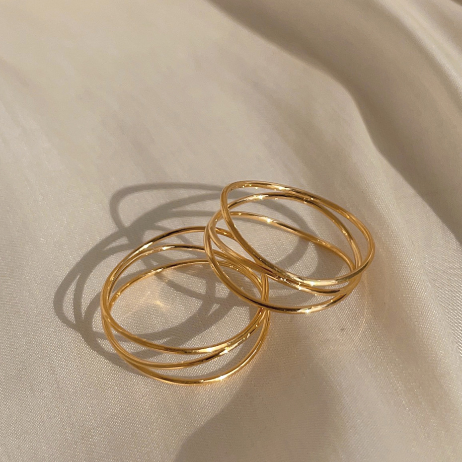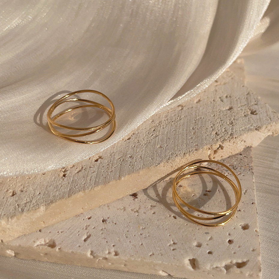 French three-layer extremely fine line interwoven niche design 18k gold stainless steel ring waterproof factory wholesale