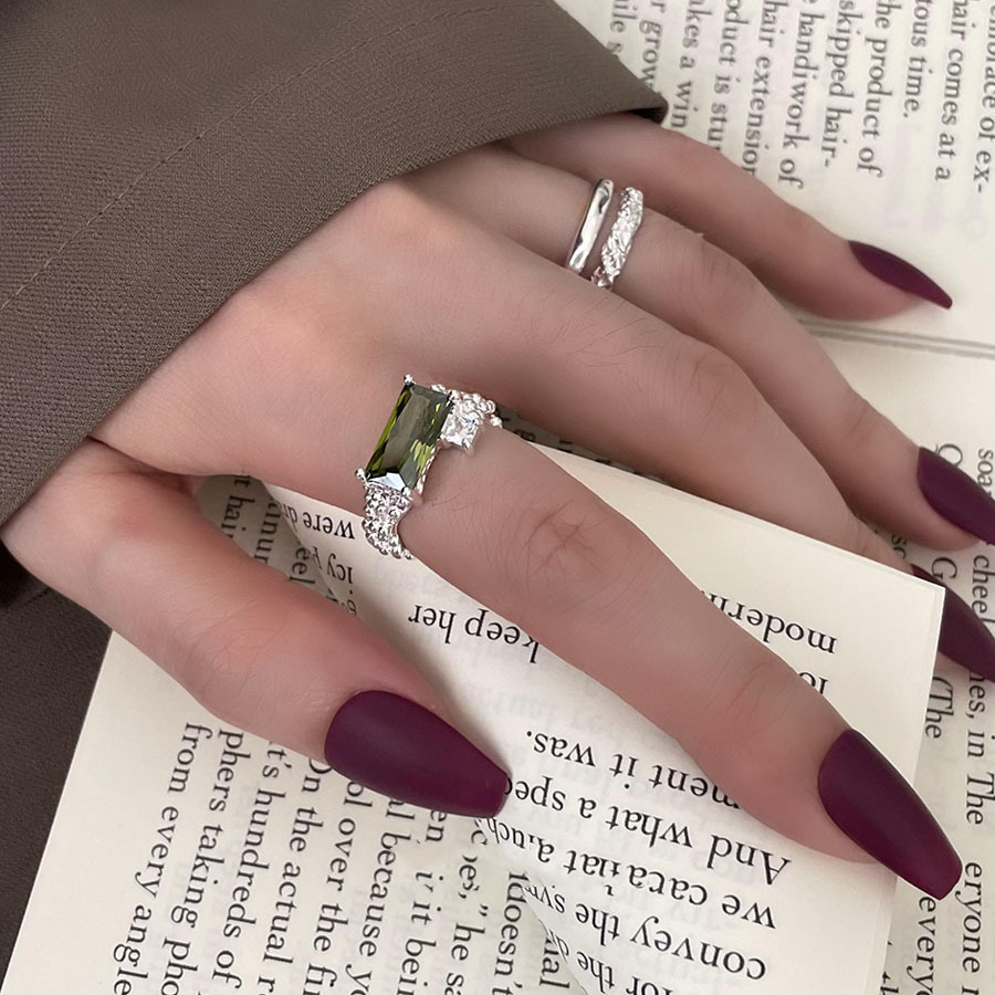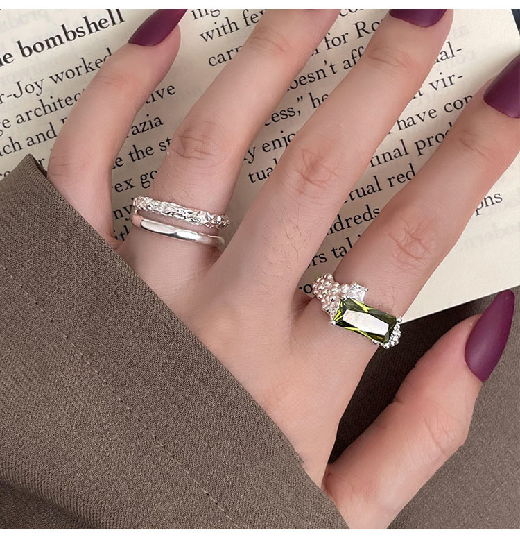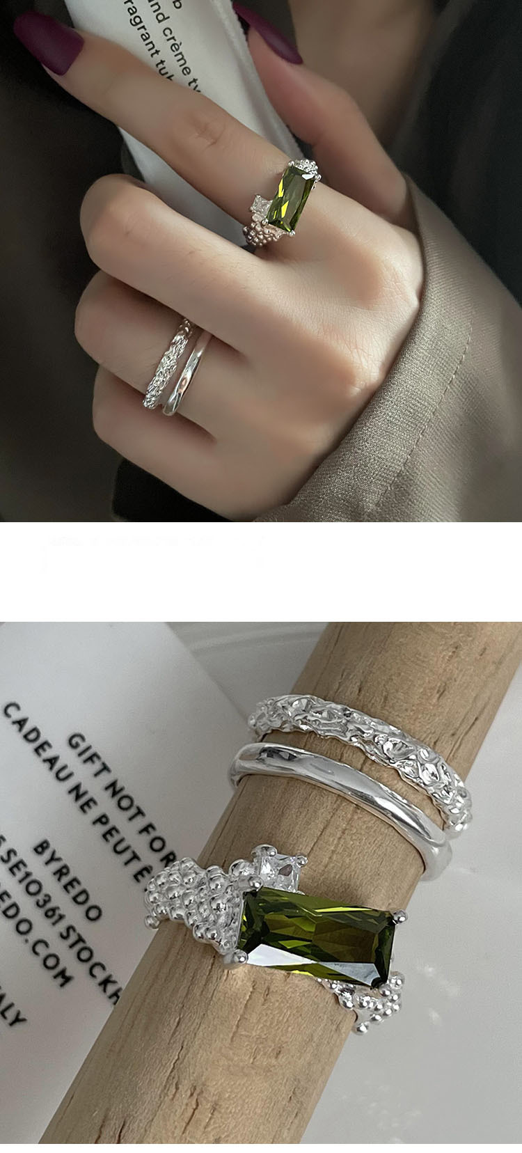 Color: Tang Grass Pattern Green Zirconium Hollow Ring