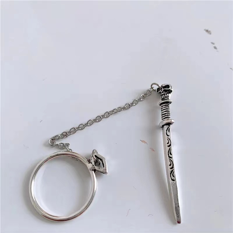 European and American new fashion punk style plug-in chain sword ring independent station cross-border creative dagger hand jewelry