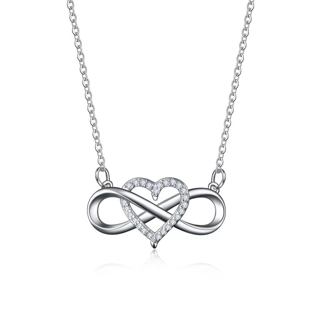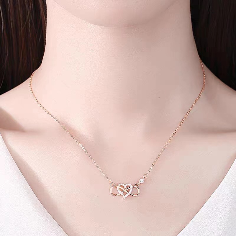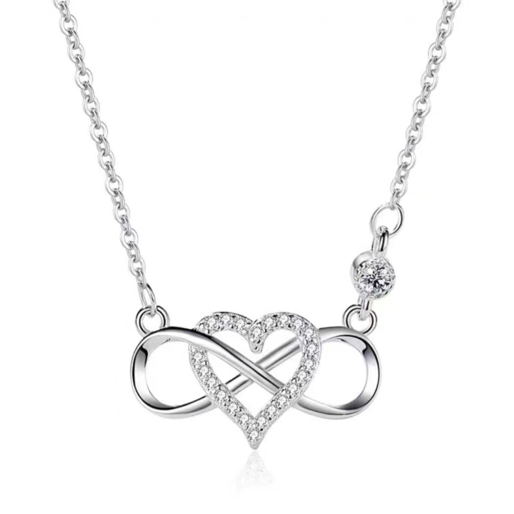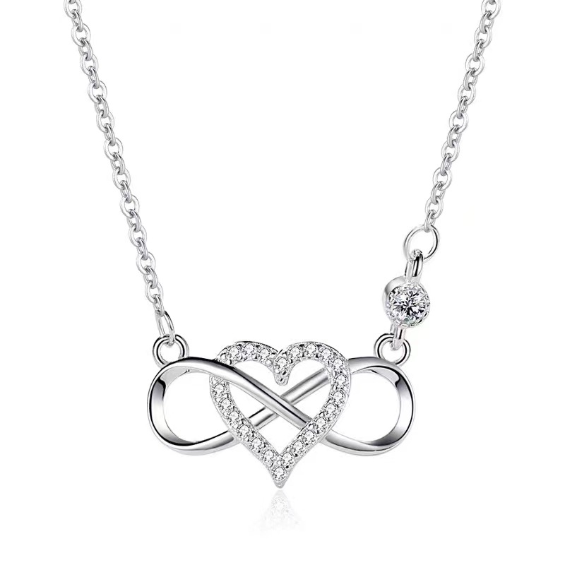 Fashion Platinum Link Love Heart-shaped Pendant 8-character Heart-shaped Necklace Japanese and Korean Diamond-encrusted Niche Joker Factory Outlet