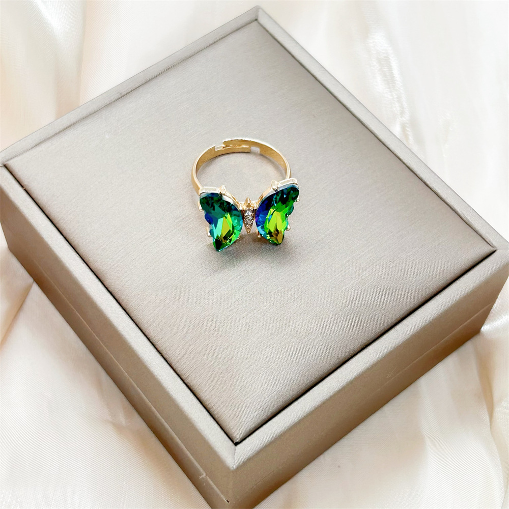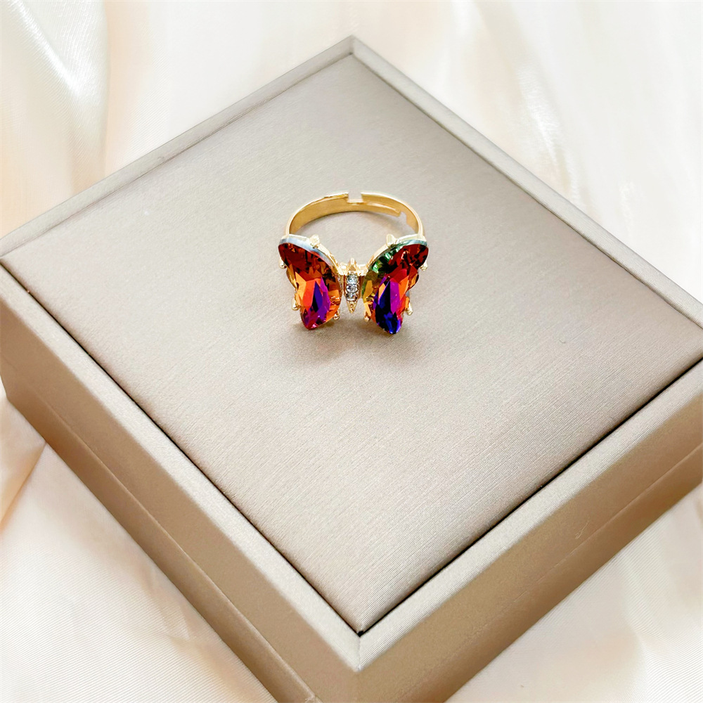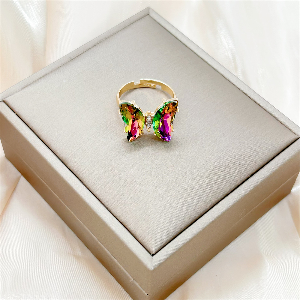 Gradient butterfly ring female personality tide INS female ring fashion temperament jewelry wholesale