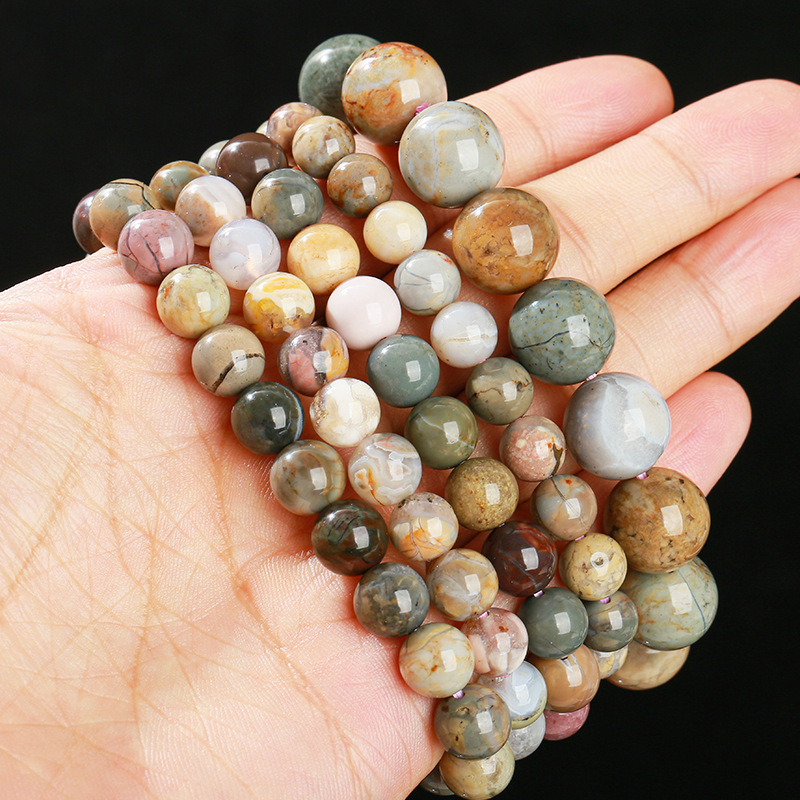 Jingdong Jewelry 3A Oil Painting Alashan Stone Bracelet Colorful Jade Magic Color Men's and Women's Personality Single Circle Round Bead Jewelry Wholesale